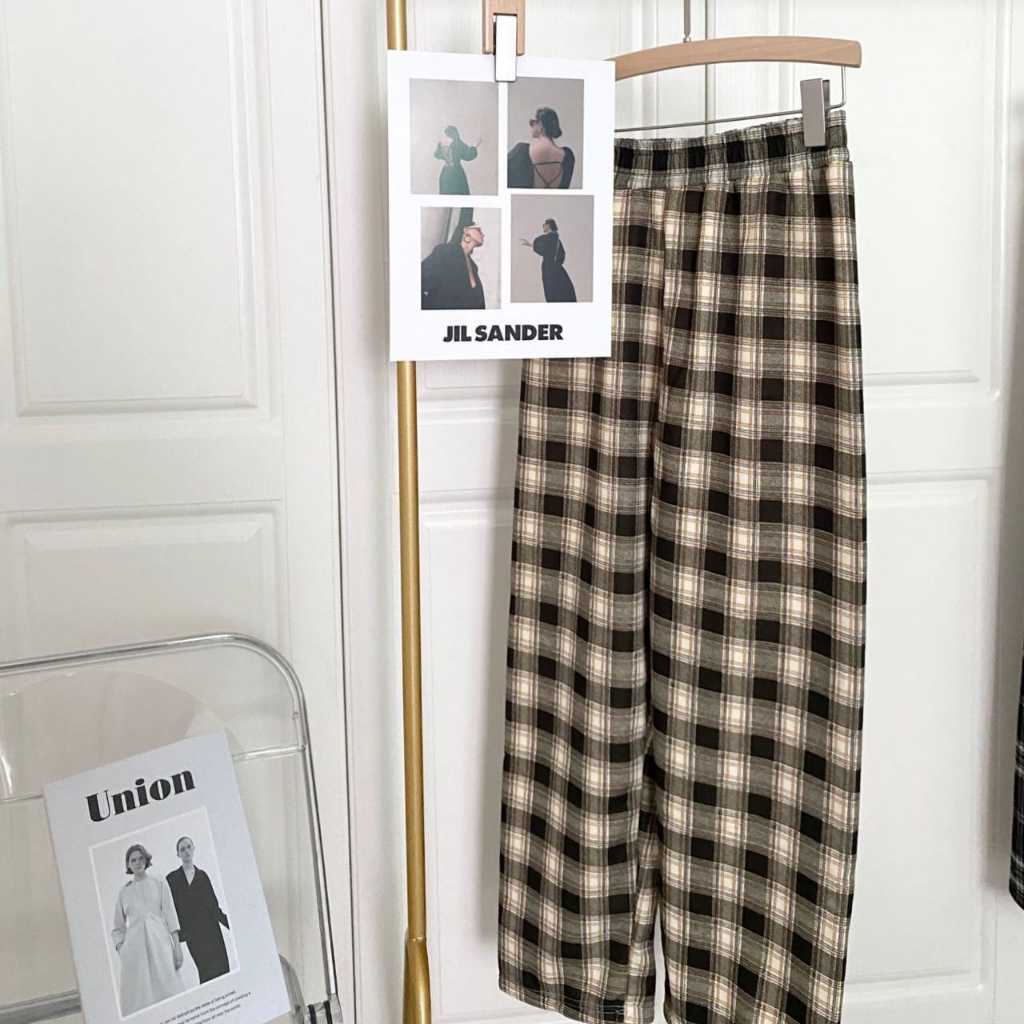 Wide Leg Plaid Long Pants Loose Seluar Panjang Lelaki Korean Style Elastic Celana Men 格子裤