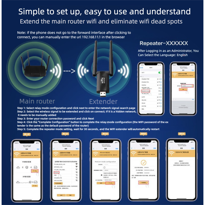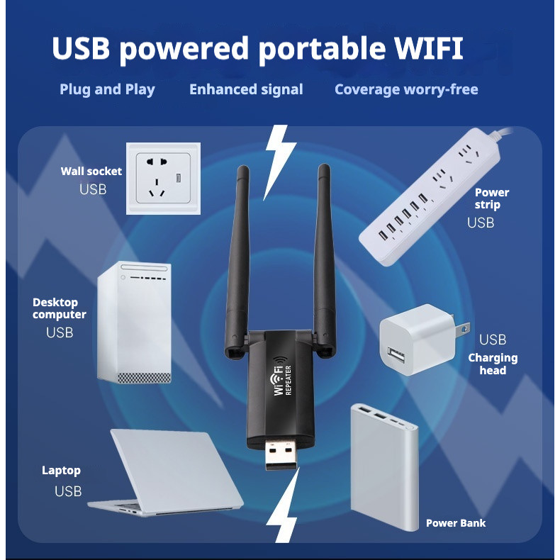 WiFi Extender USB Powered WIFI Repeater Signal Booster Strong Wall Penetration Home Router Extender