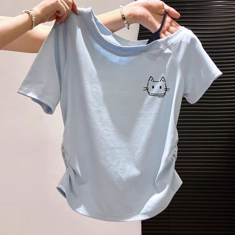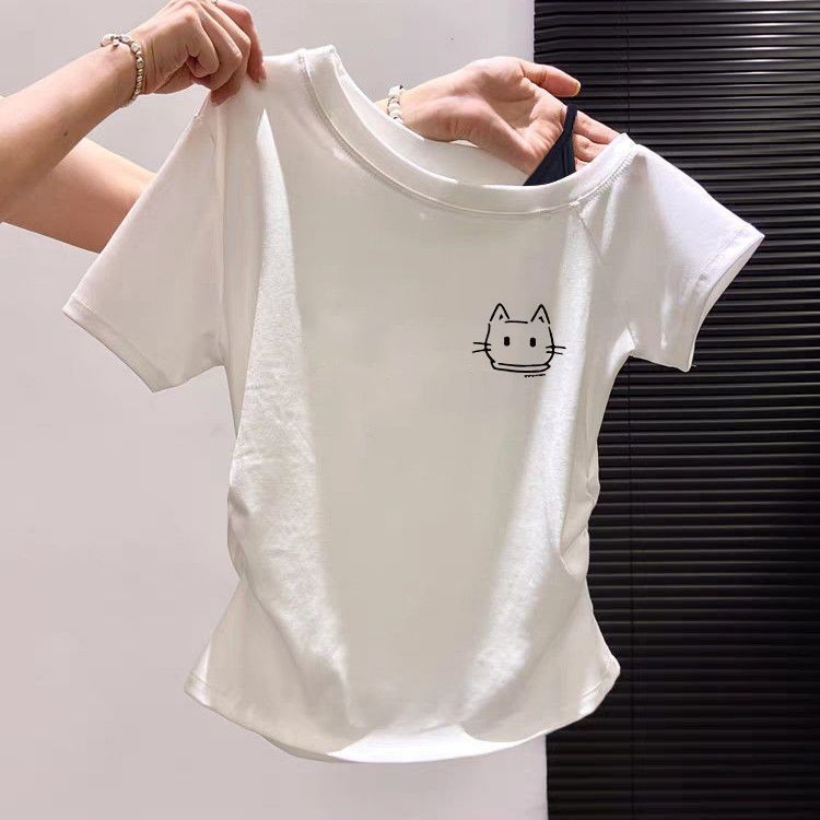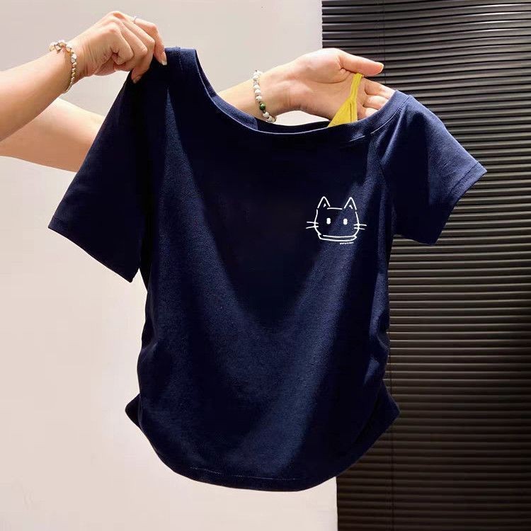 【WJZ】Korean Version Women's Pure Cotton Slim-fit Strapless Short-Sleeved t-Shirt【PDD109 】