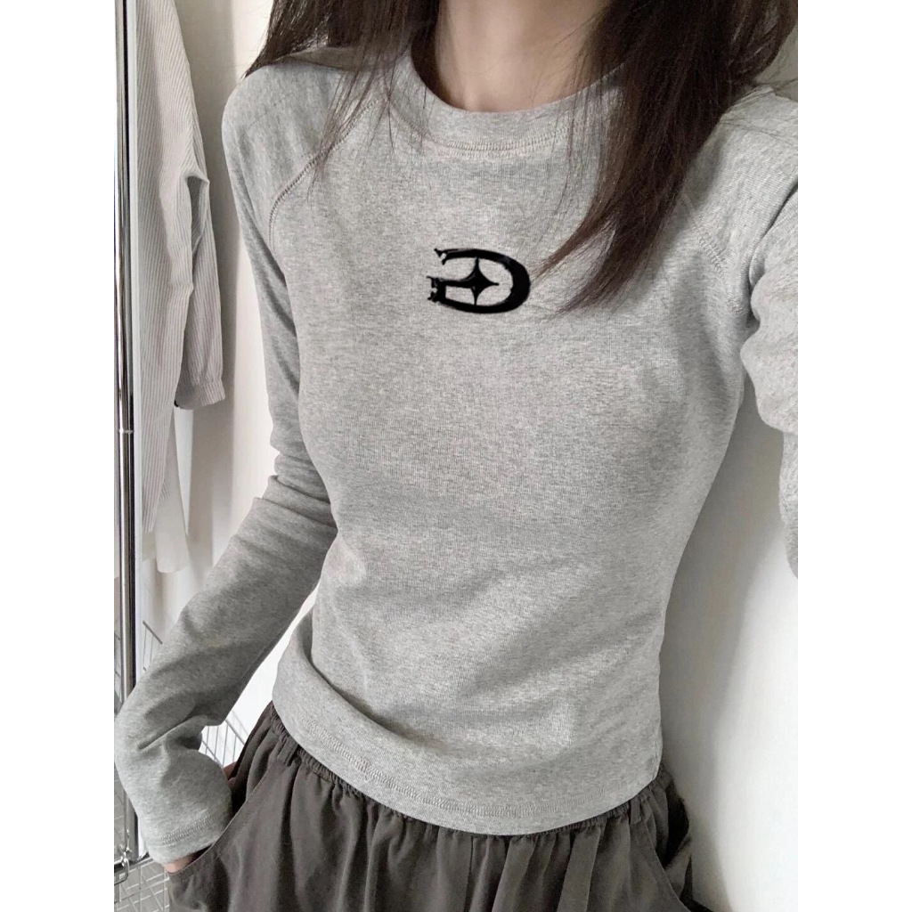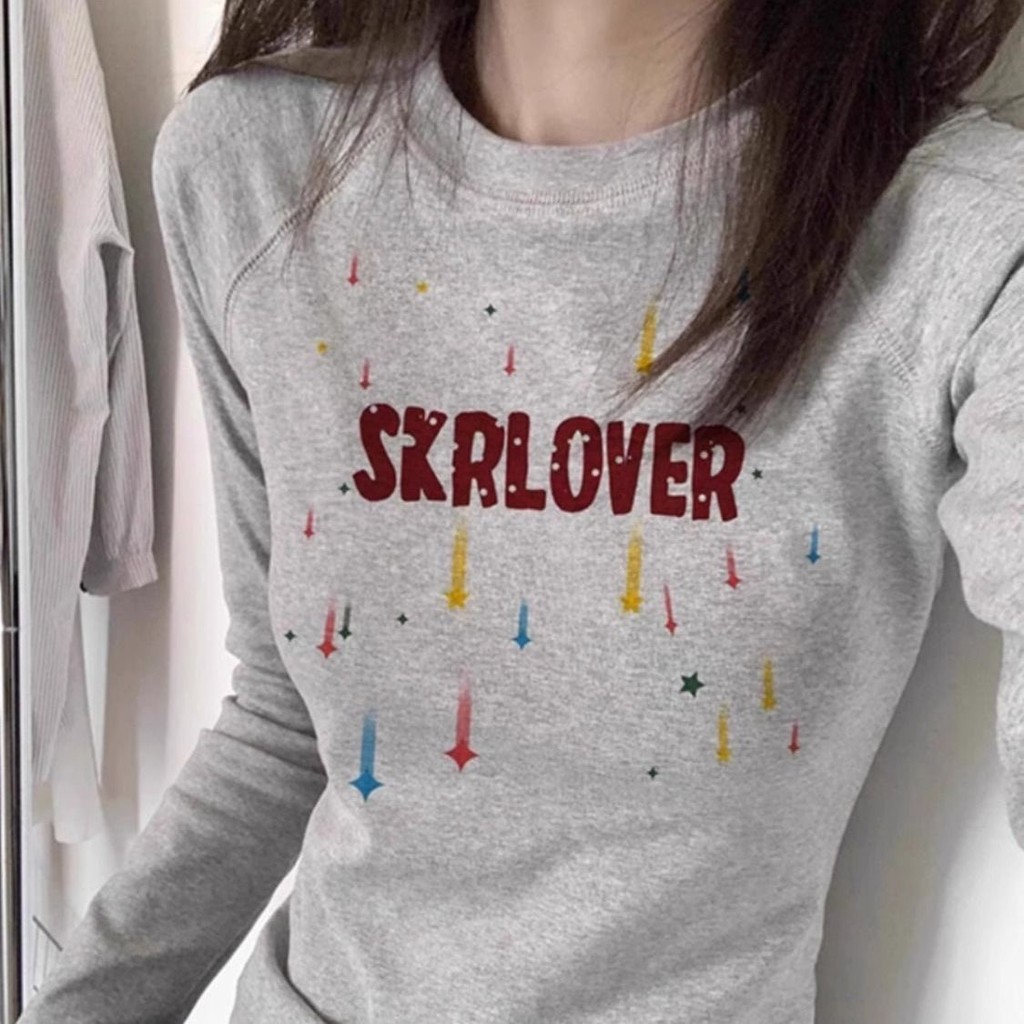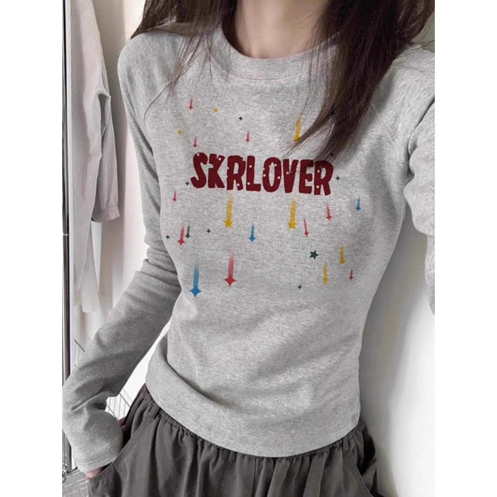 【WJZ】Korean Women Fashion Letter Printed Pure Cotton Long-Sleeved T-Shirt【Pdd191】