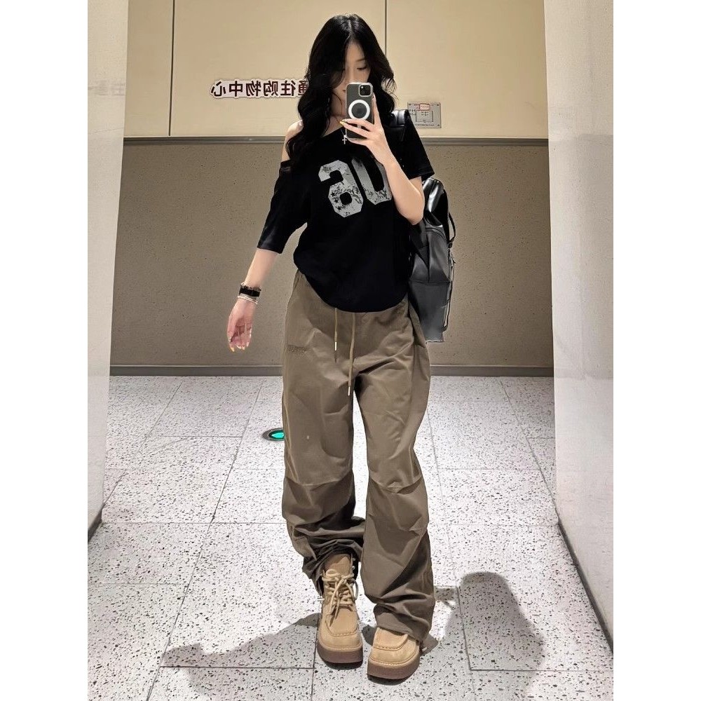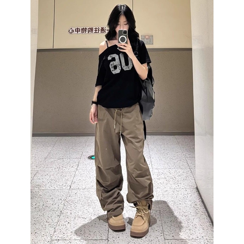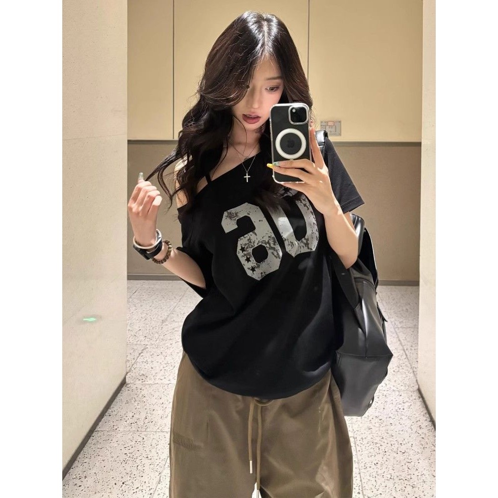 【WJZ】Korean Women Pure Cotton Black Strapless Loose Casual Short-Sleeved T-Shirt【PDD40】