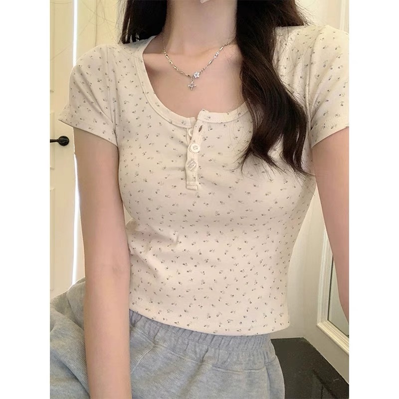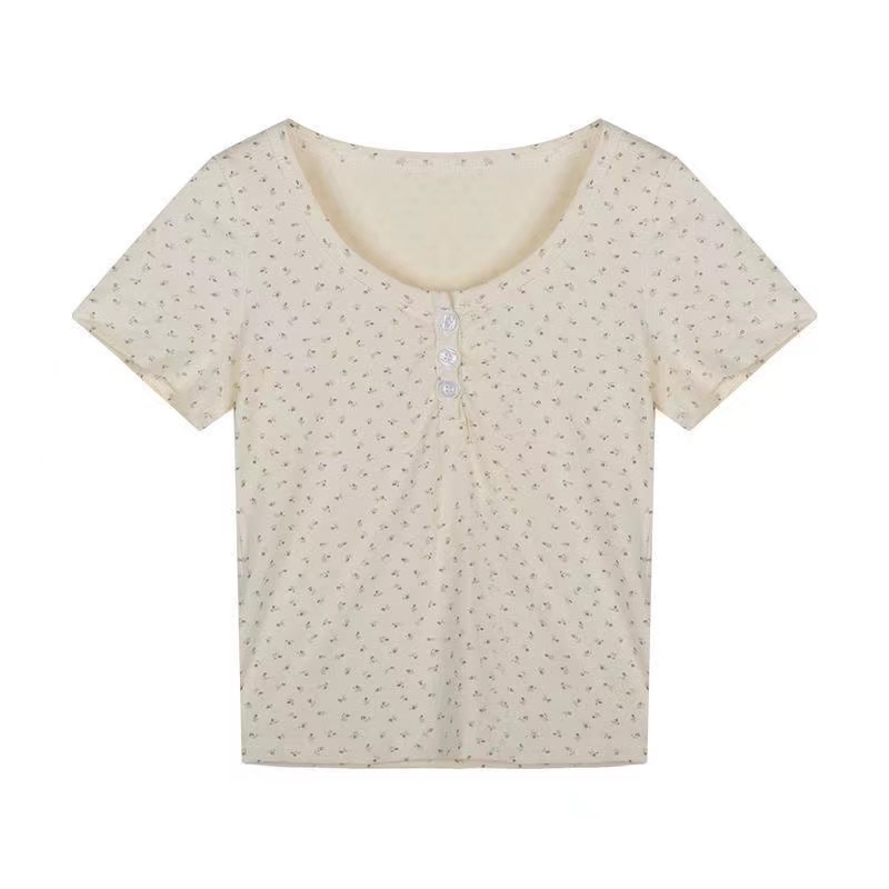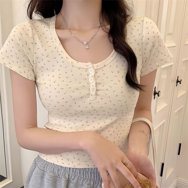【WJZ】Women's Korean Fashion Floral Print Short Sleeve T-shirt【T31】