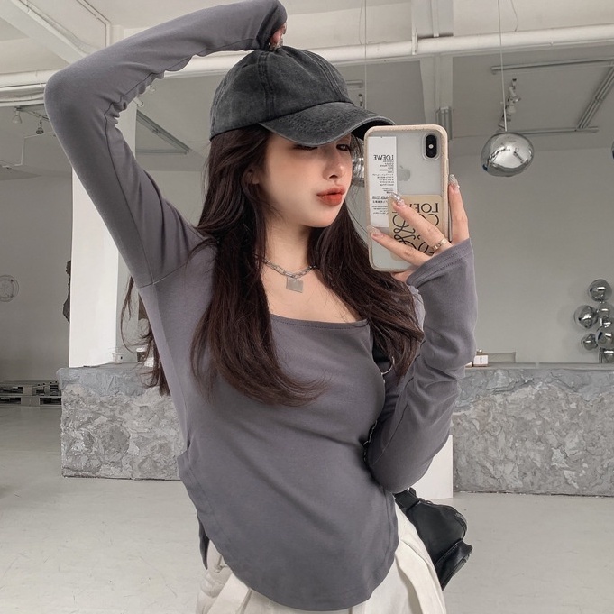 【WJZ】Women's Korean style fashionable versatile breathable high quality fabric long sleeve Top【6806】