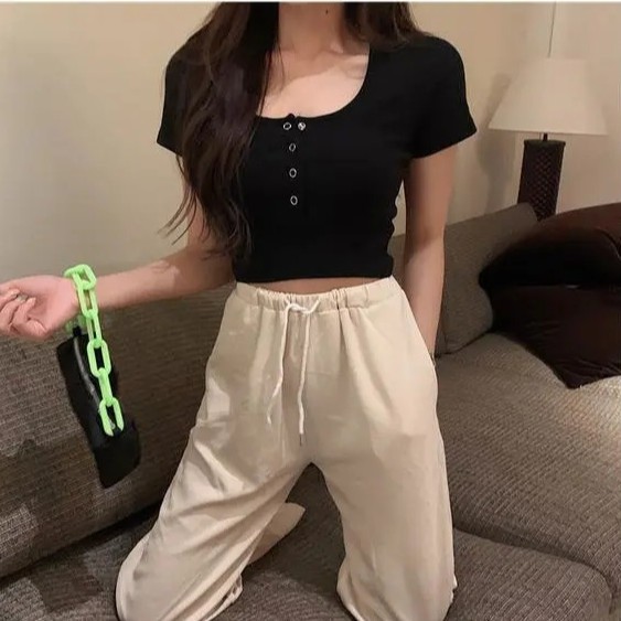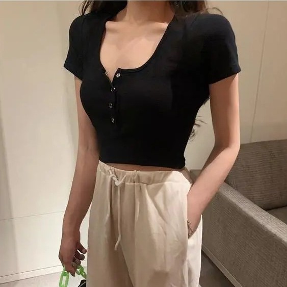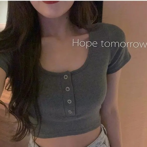 【WJZ】Women's Korean style high waist knitted short sleeve crop top【326】