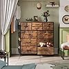 WLIVE Fabric Dresser for Bedroom with 10 Drawers, Chest of Drawers with Side Pockets and Hooks, Sturdy Metal Frame, Drawers Organizer Unit for Living Room, Hallway, Rustic Brown Wood Grain Print