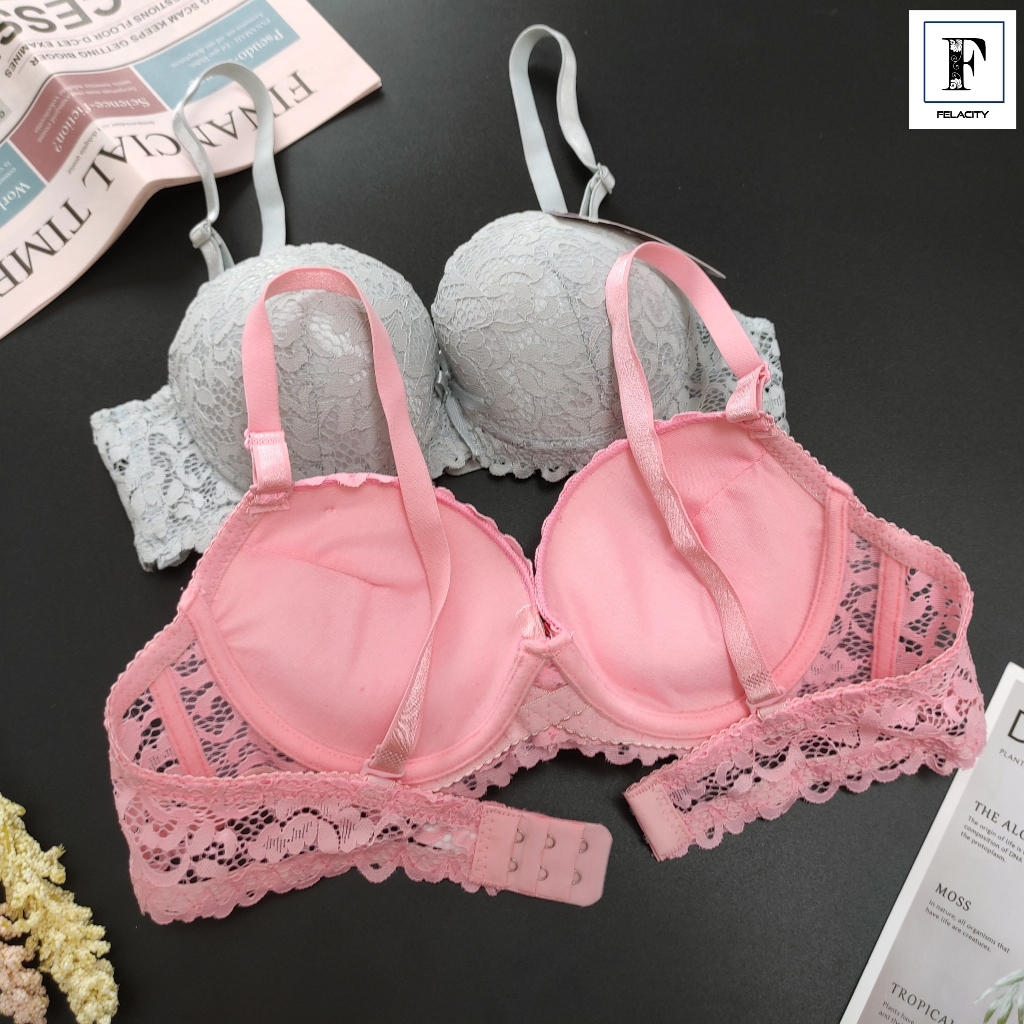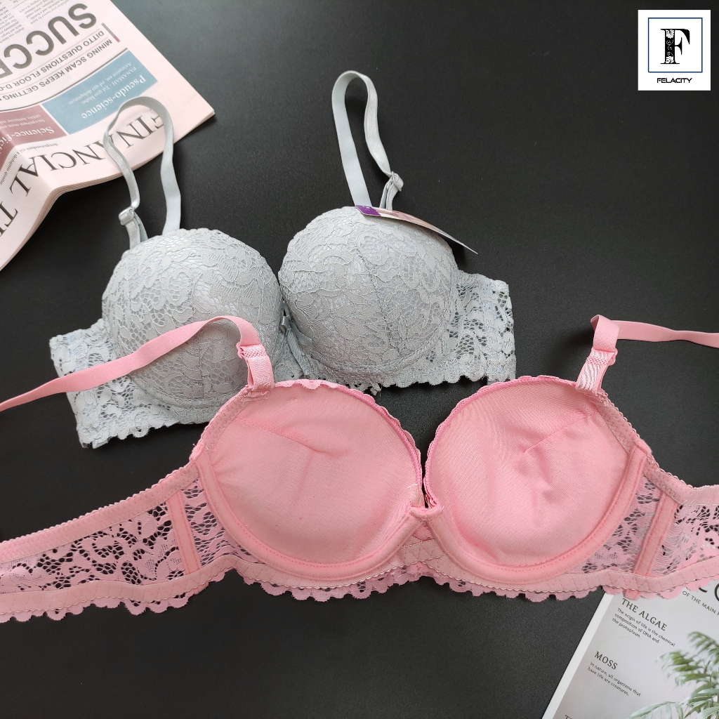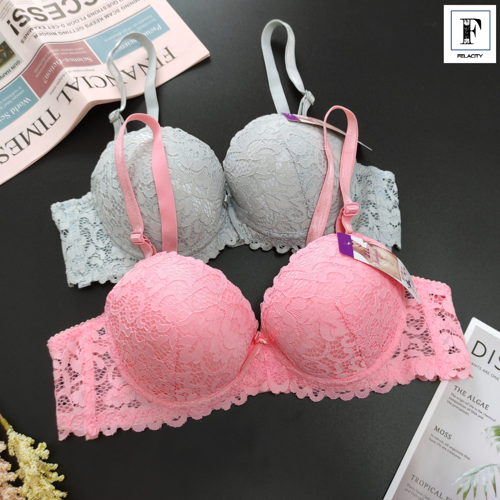 Women Bra Lace Wired Thick Push Up Sponge Cup AB Baju Dalam Wanita Wayar Besi 内衣有鋼圈