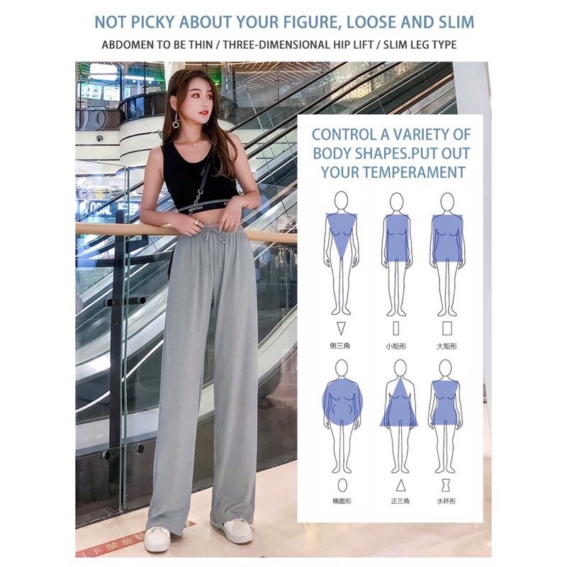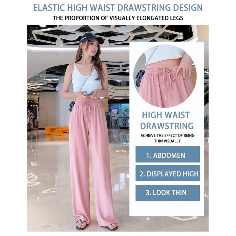 Women Ice Silk Fabric Wide leg pants high waist straight loose pants seluar perempuan 女阔脚裤