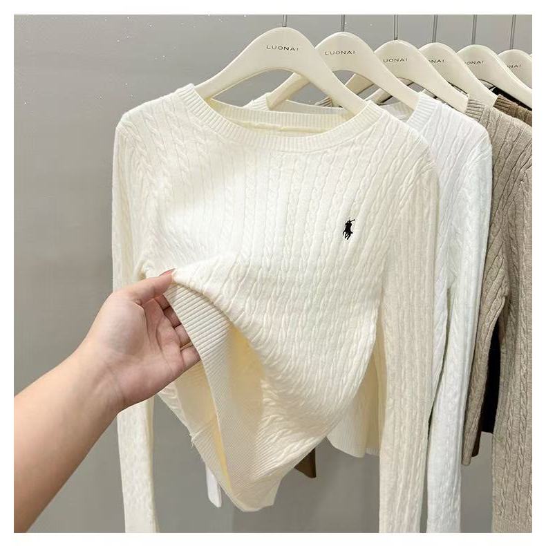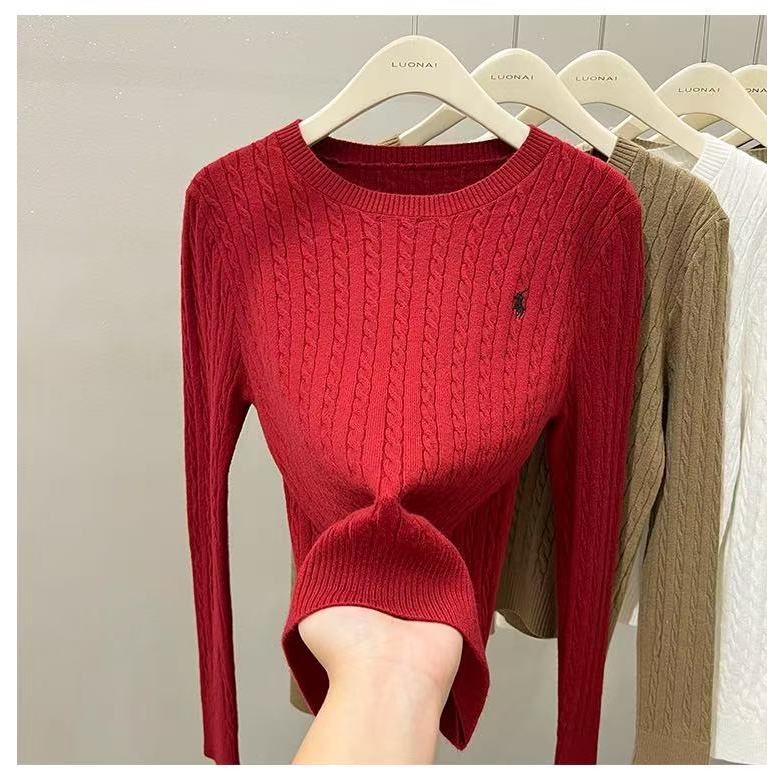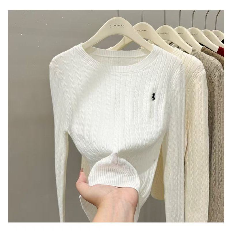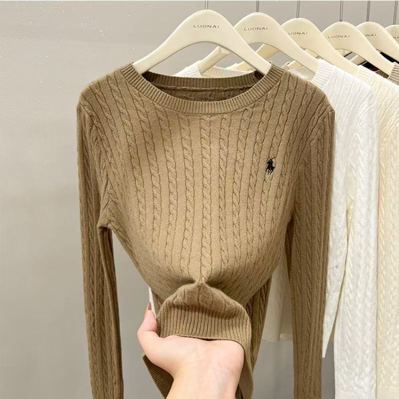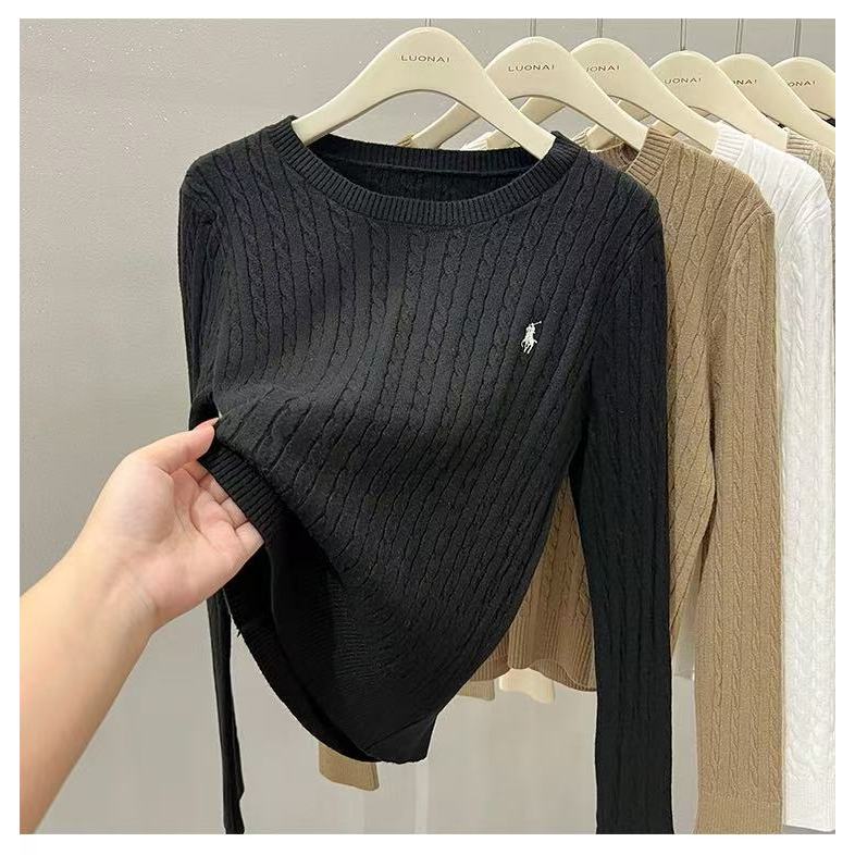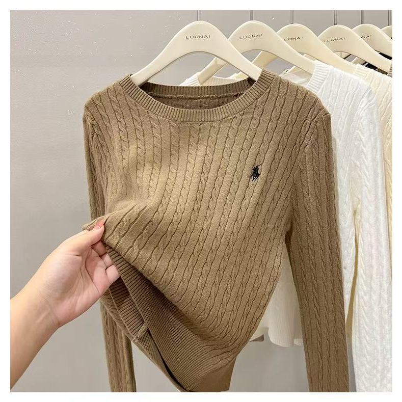 Women Ladies Embroidered Loose Knit Bottoming Blouse Fried Dough Twists Long Sleeve Blouse