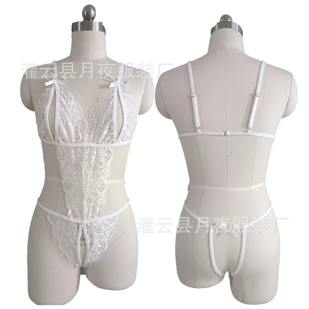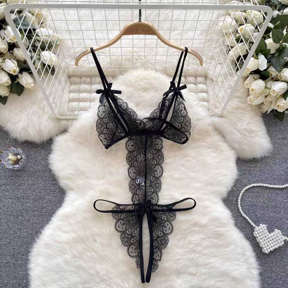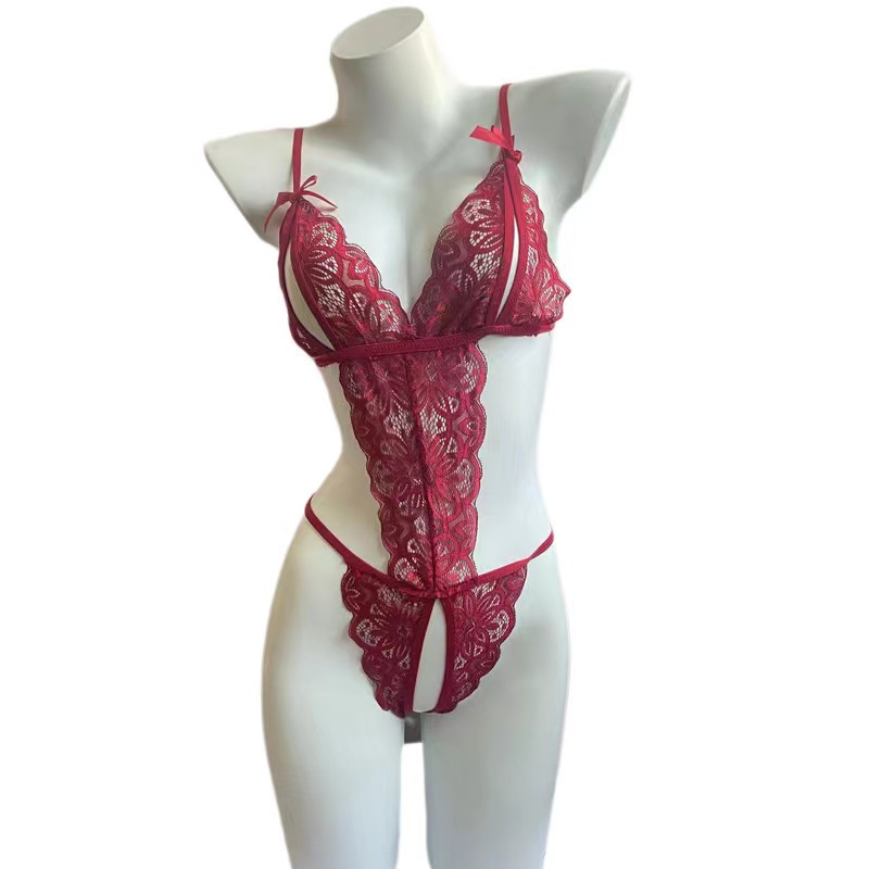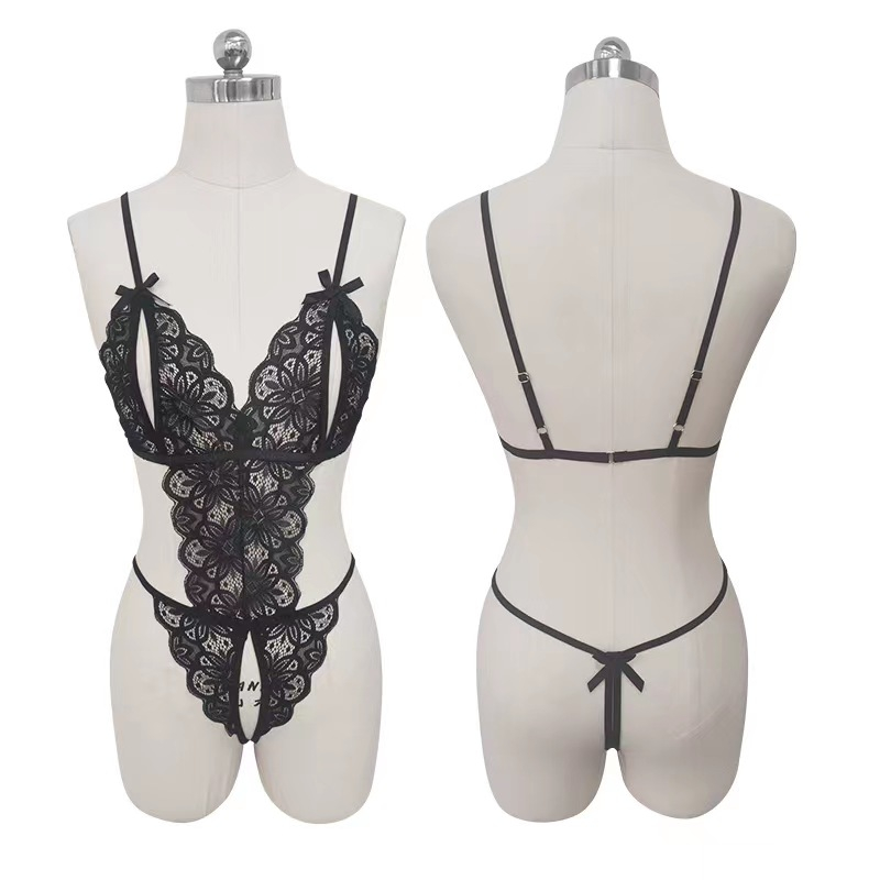 Women Ladies Sexy Lingerie Bodysuit Jumpsuit One-piece Suits Lace Pierced Open Crotch Baju Badan Seksi Wanita 性感情趣连体衣