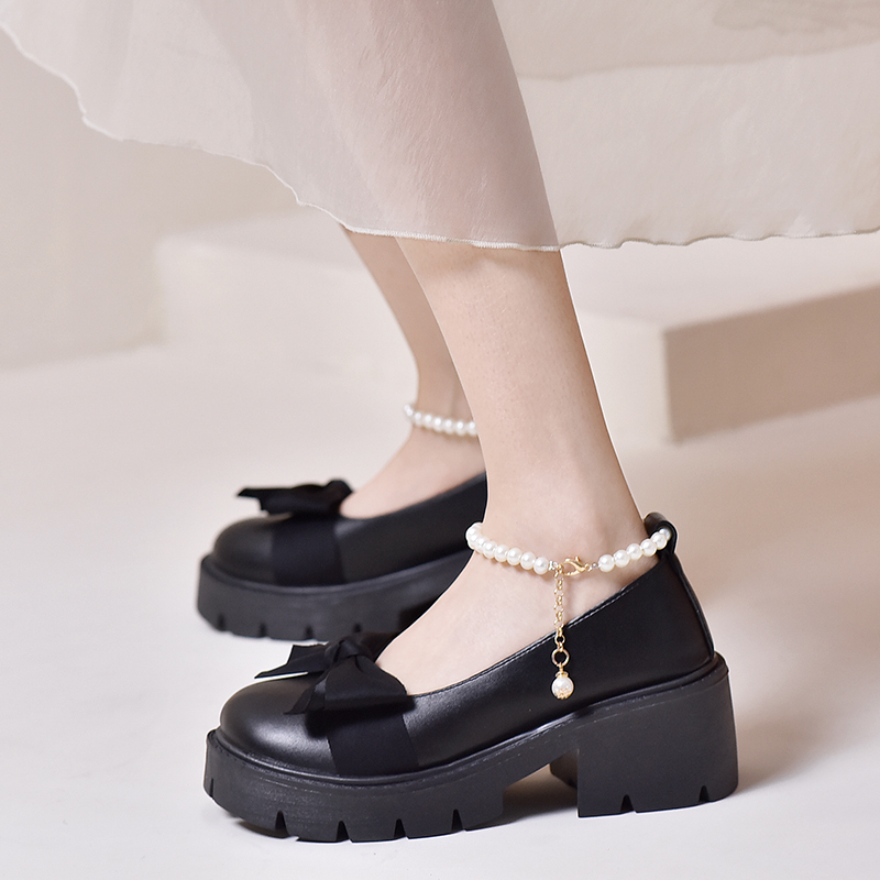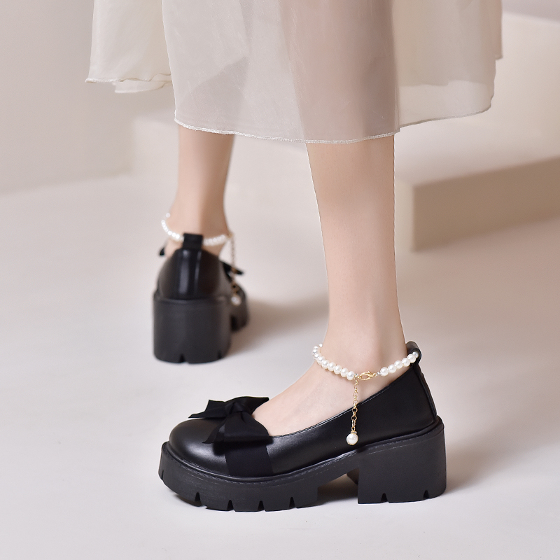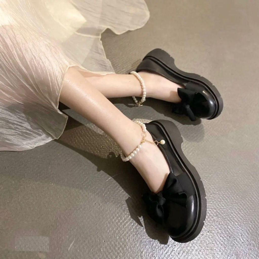 Women Lolita Japanese Style Round Toe Student Uniform Black Small Kasut Kulit size 35-42