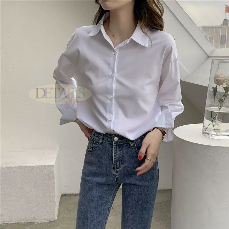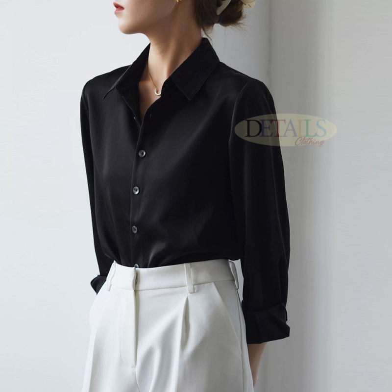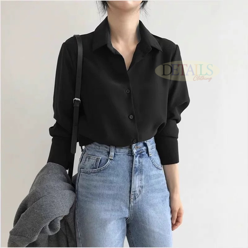 Women Long Sleeve Black Blouse Kemeja Cotton Viral Perempuan Kemeja Wanita Plus Size 黑衬衫