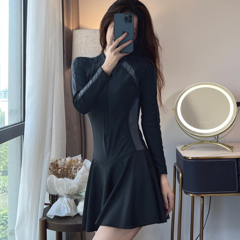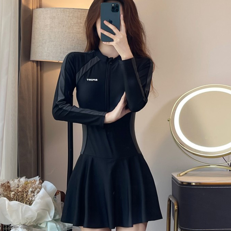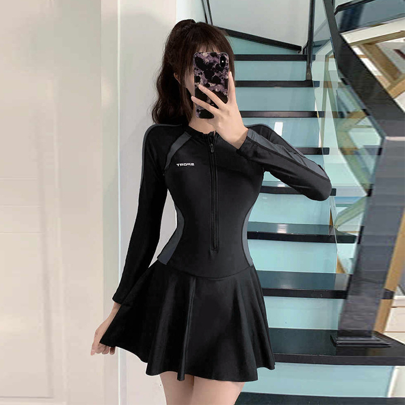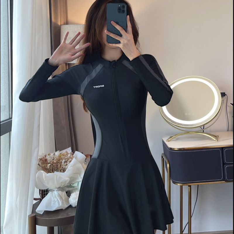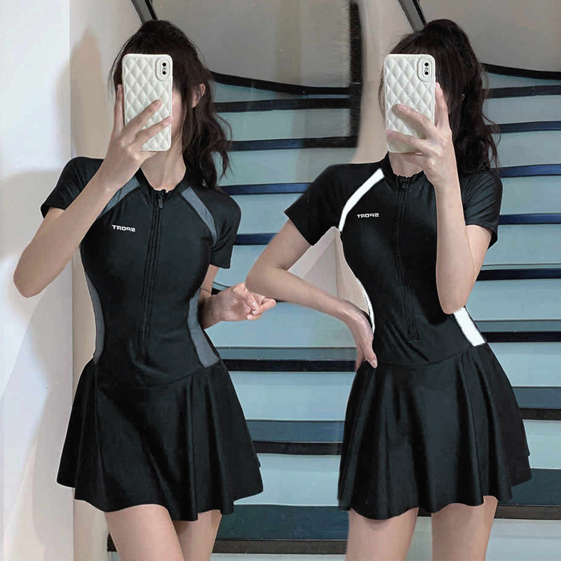 Women One-Piece Swimsuit Simple Sports Dress Swimsuit Conservative Hot Spring Slimmer Swimsuit