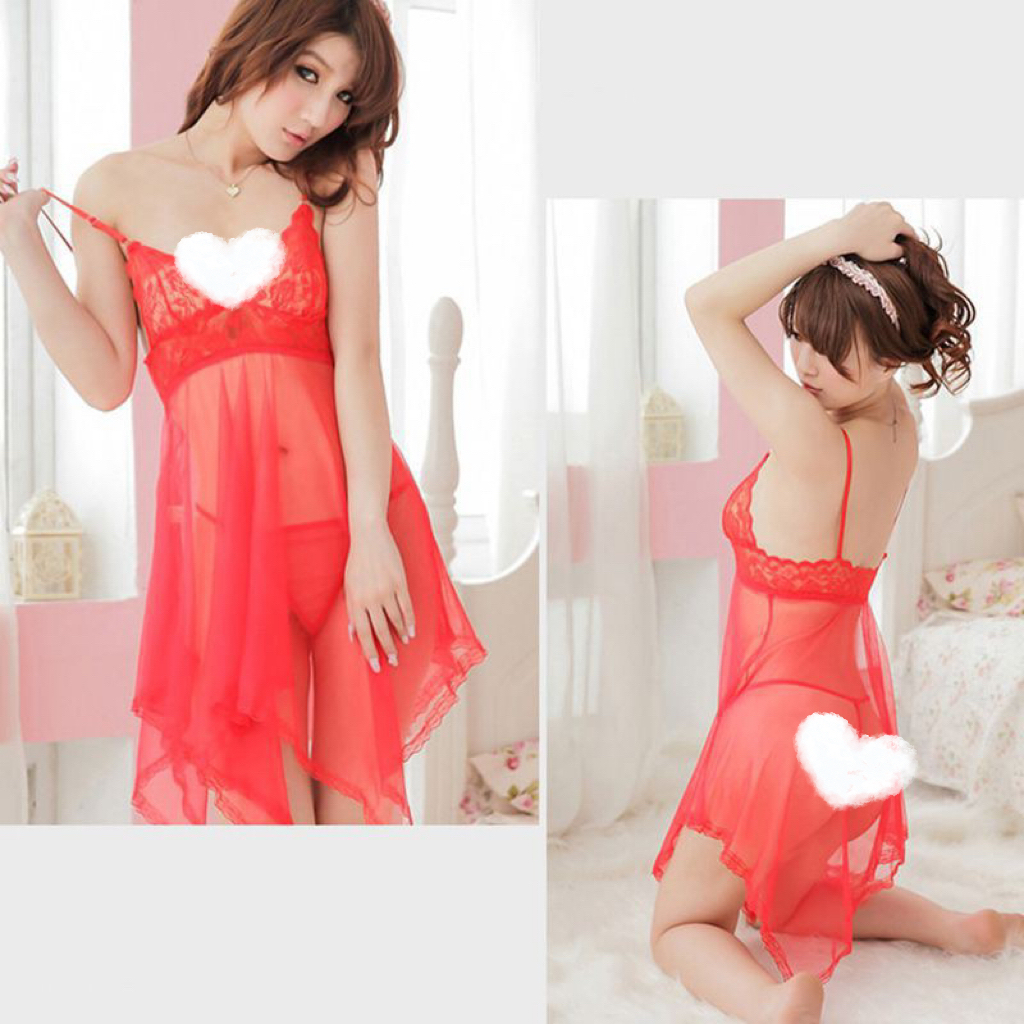 Women Pajamas Deep V Neck Open Lace Nightdress Home Sleepwear Pajamas Dress Sexy Lingerie