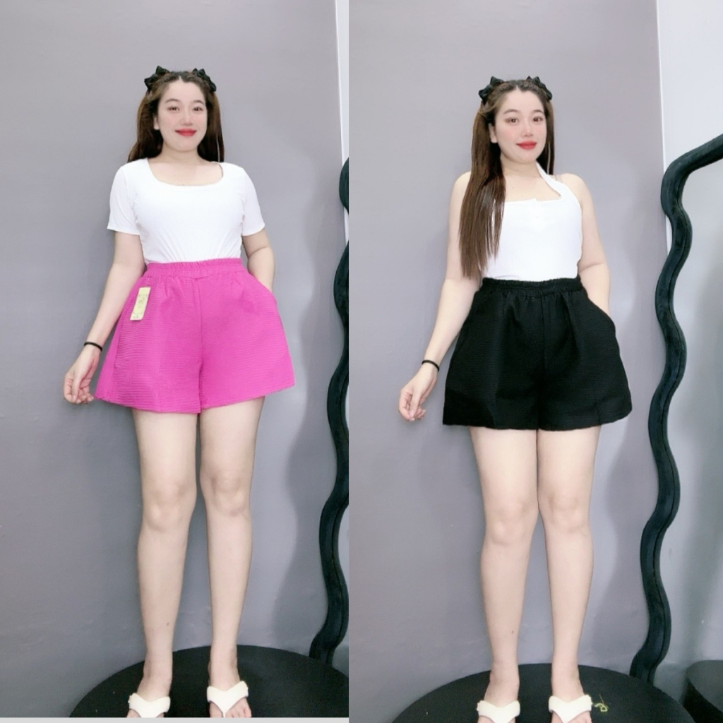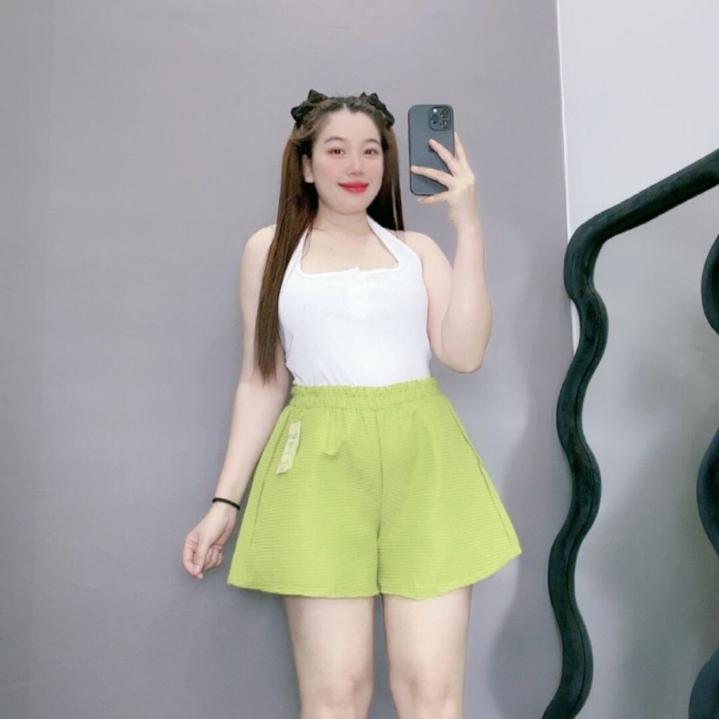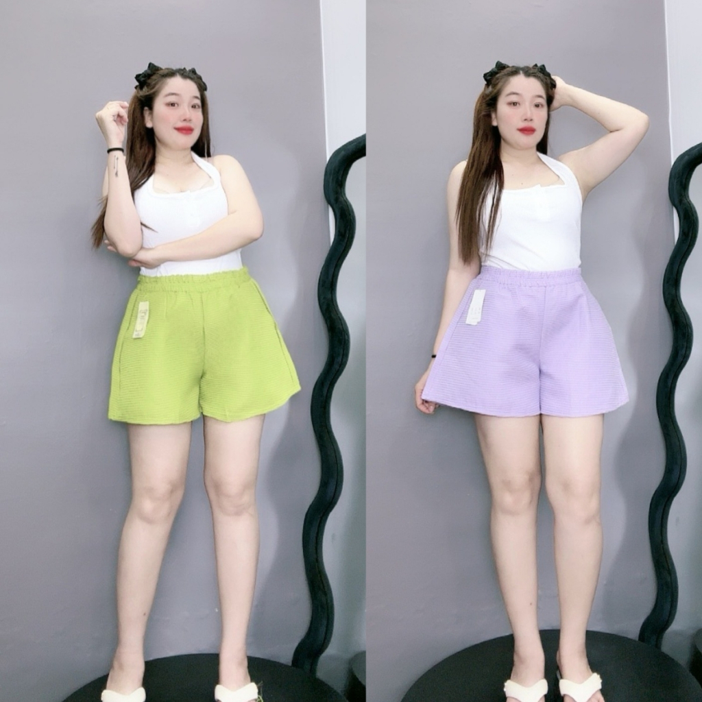 Women's big size puffy tatar shorts, A-shaped, elastic waist, square pattern, regular, super chic, hot style Q15