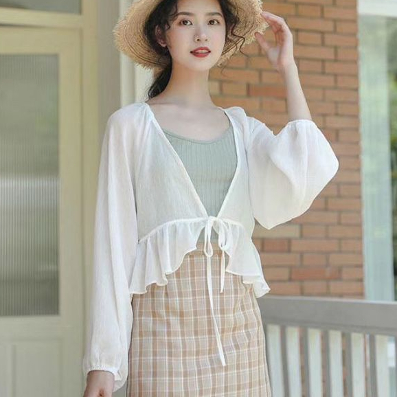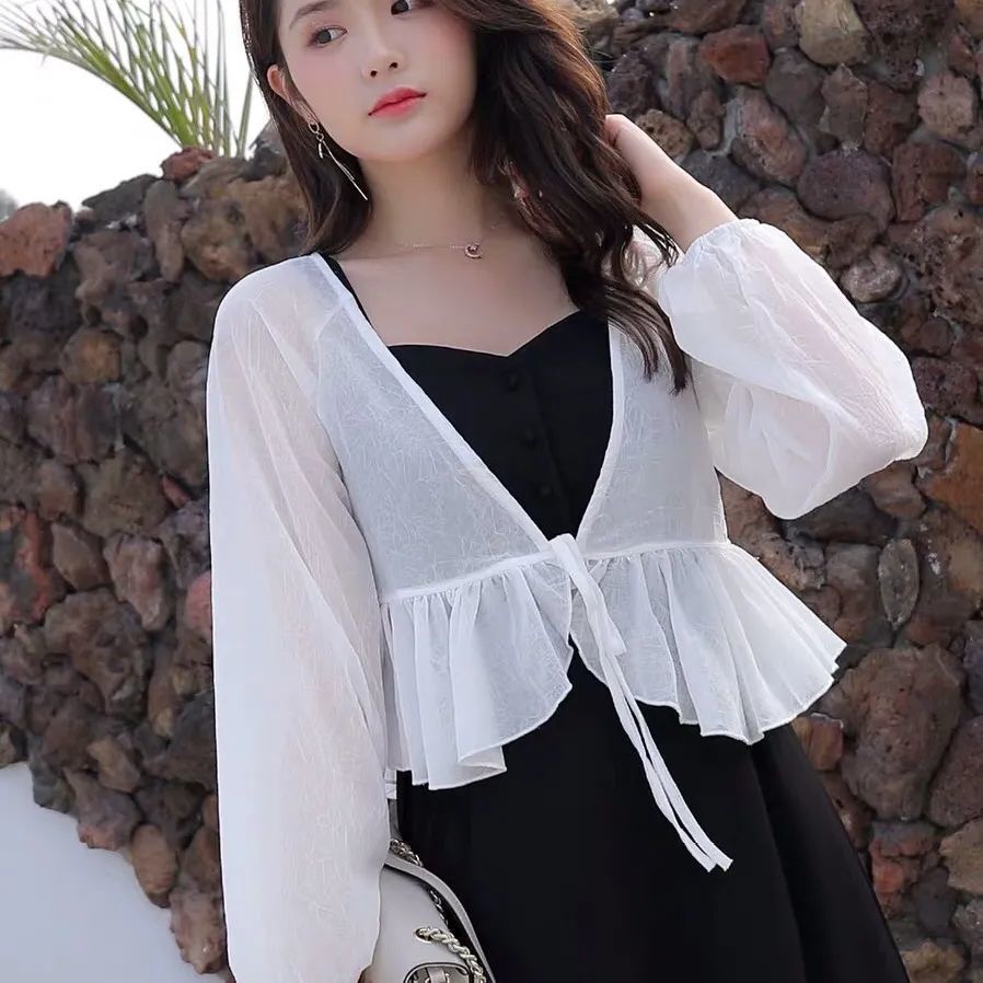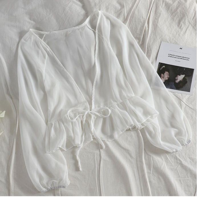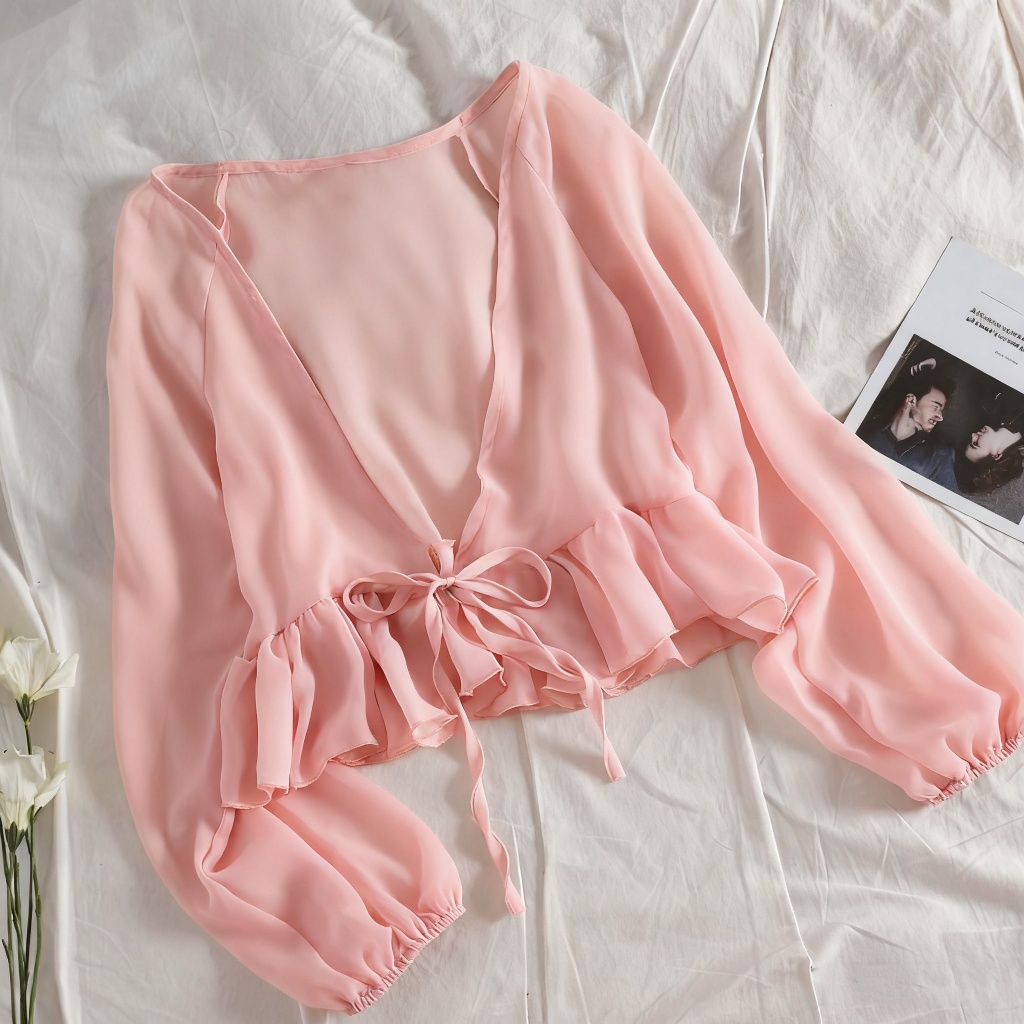 Women's Casual Chiffon Solid Color Blouse, Ruffle Long Sleeve Shirt