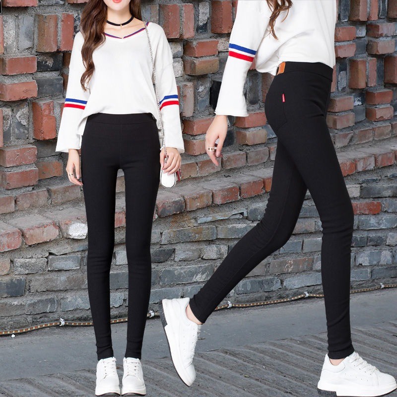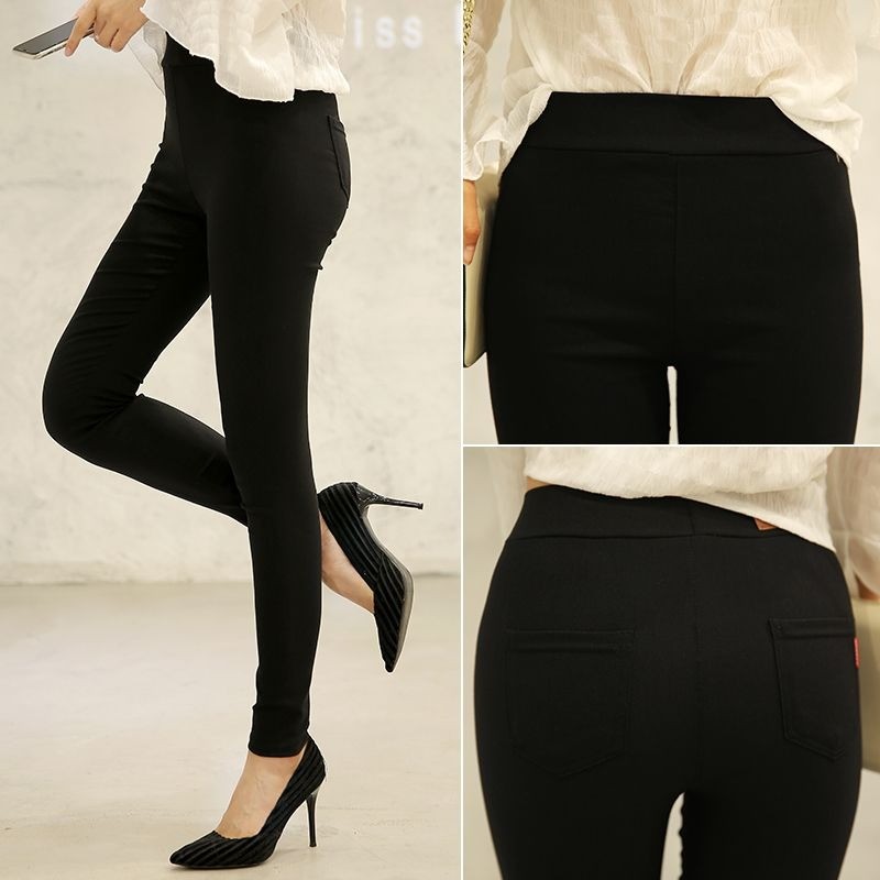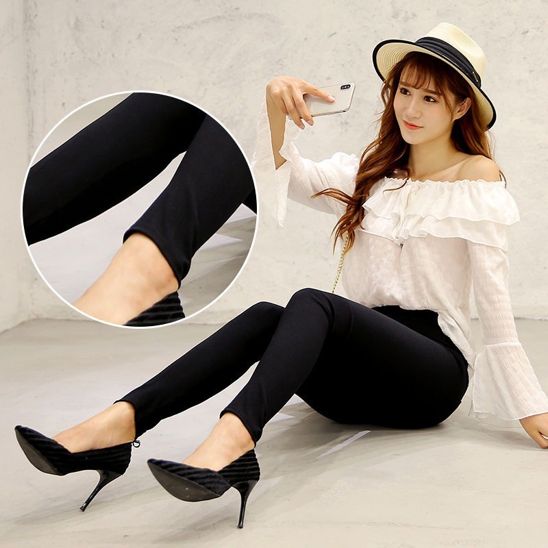 Women's Elastic Feet Pants Stovepipe Black High Waist Leggings Tight Skinny Pencil Pants