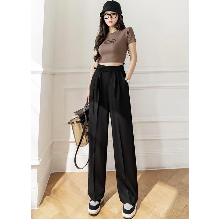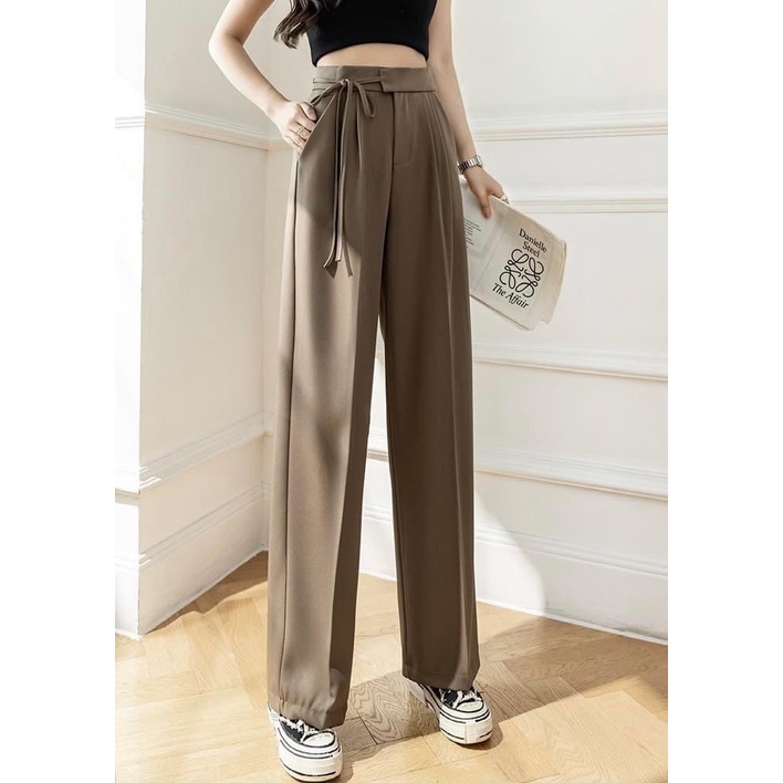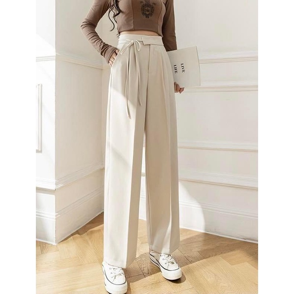 Women's High Waist Wide Leg Pants Super Cute Korean Style Bow Tie Straight Leg Pants MA25