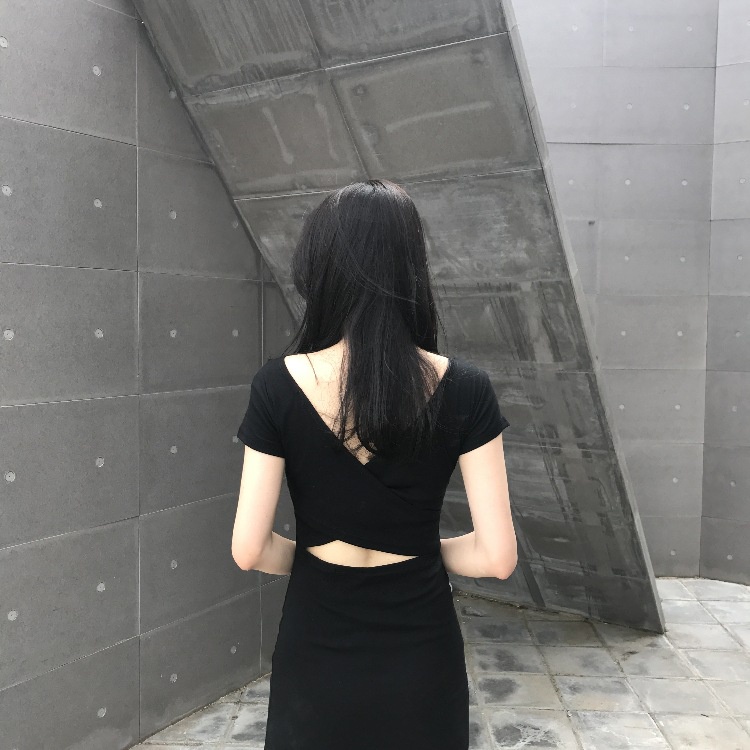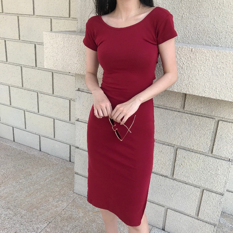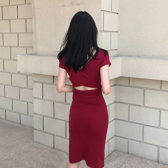 Women's Korean Style Bag Hip Sexy Mid Length Slit Short Sleeve Backless Dress