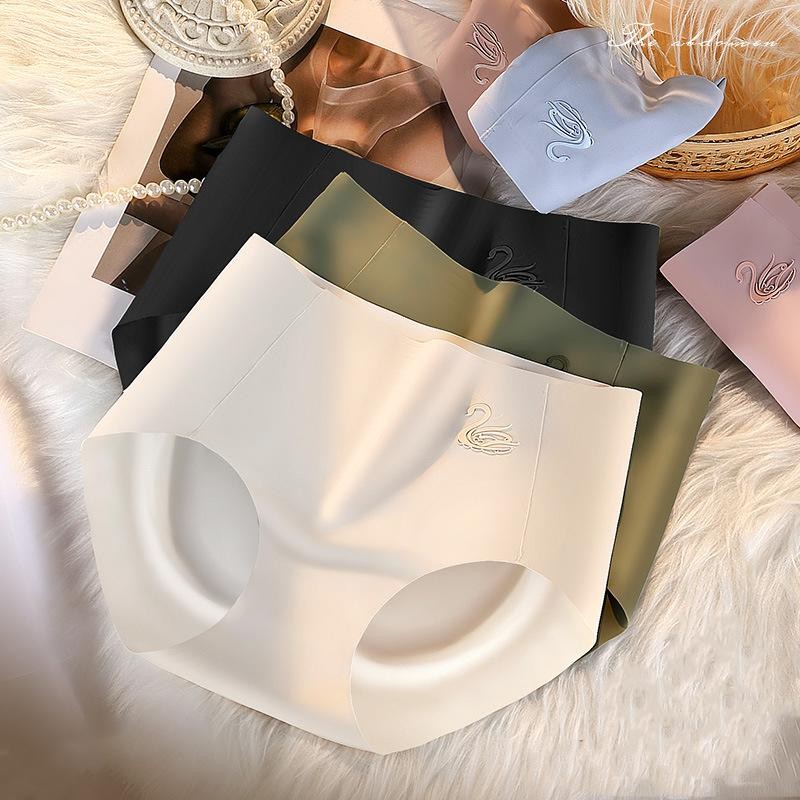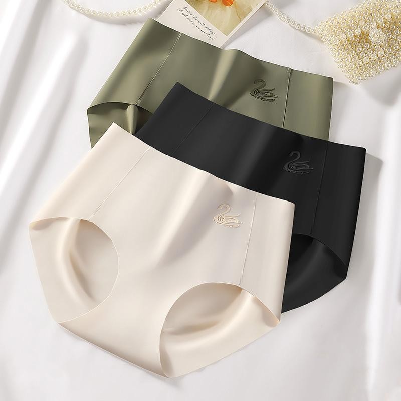 Women's Mid-waist Ice Silk Seamless Underwear with Cotton Crotch Thin and Breathable 3D Hip Underwear Briefs Panties for Women