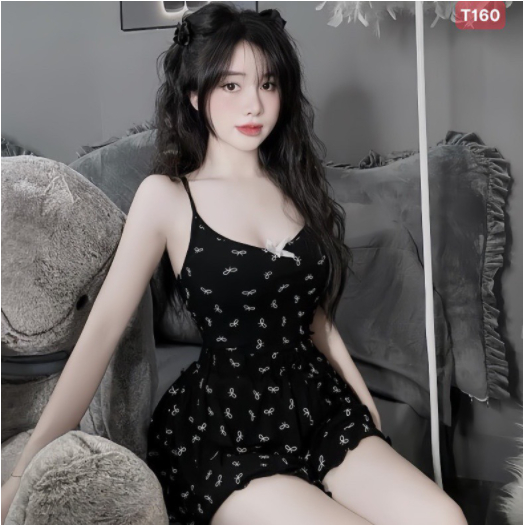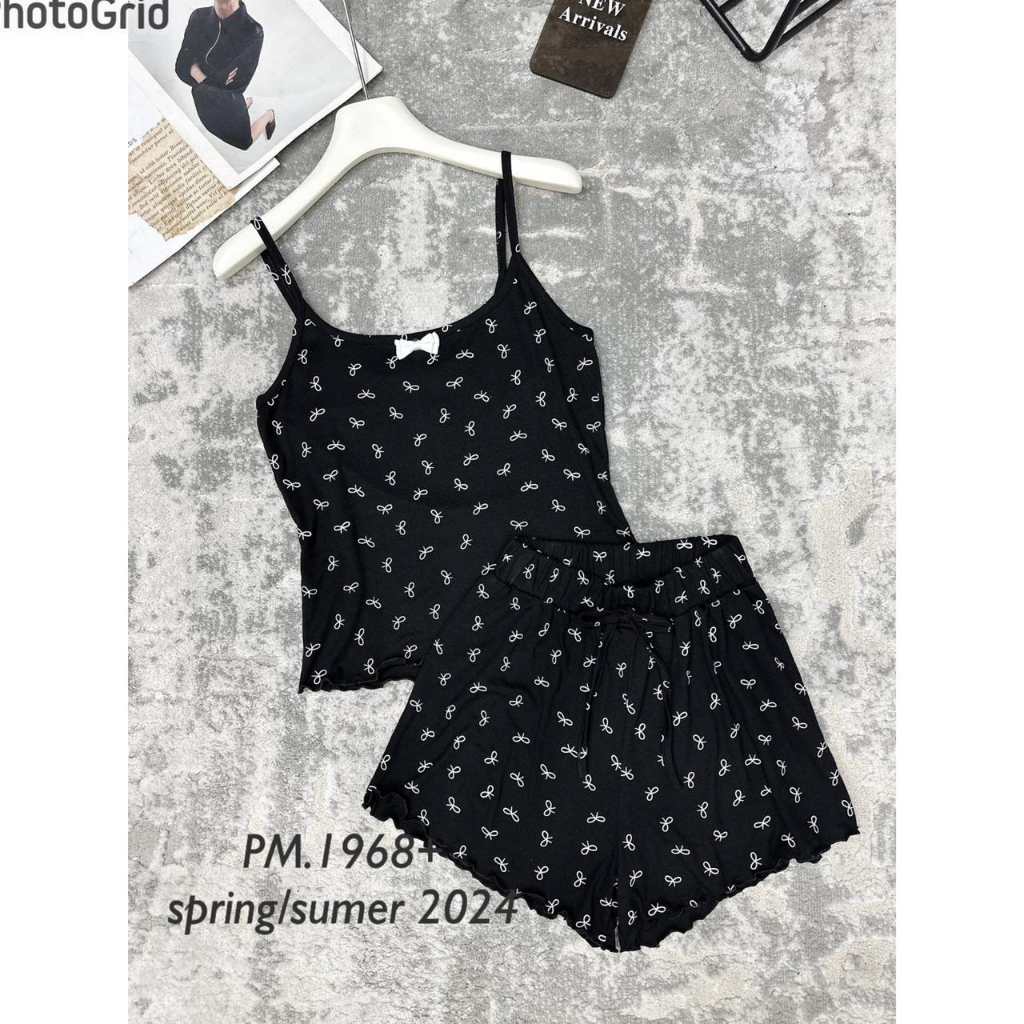 Women's pajamas Set with 2-piece bow pattern, tight print, stretchy body hugging