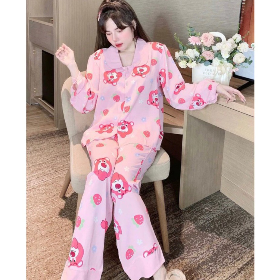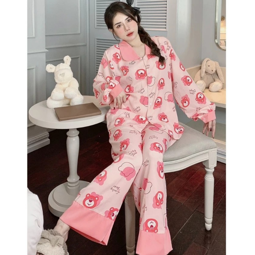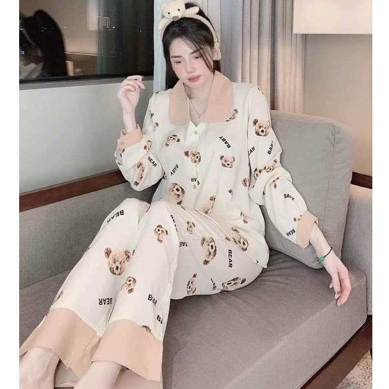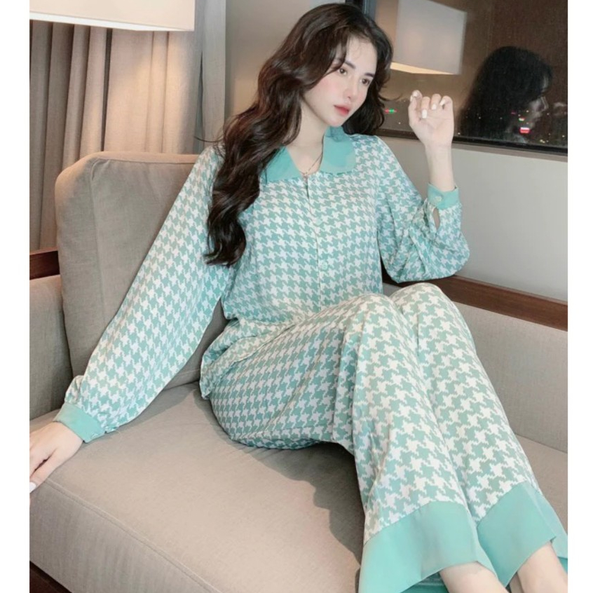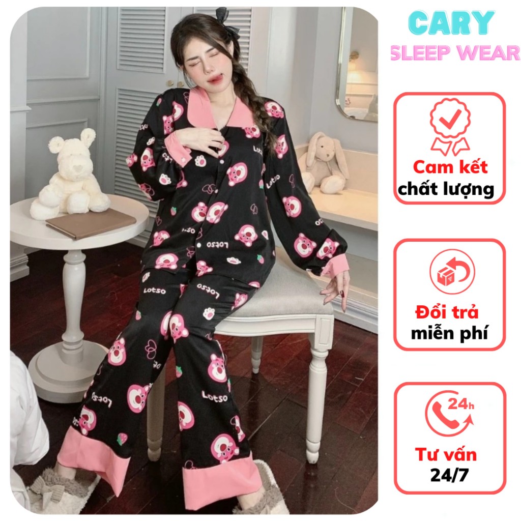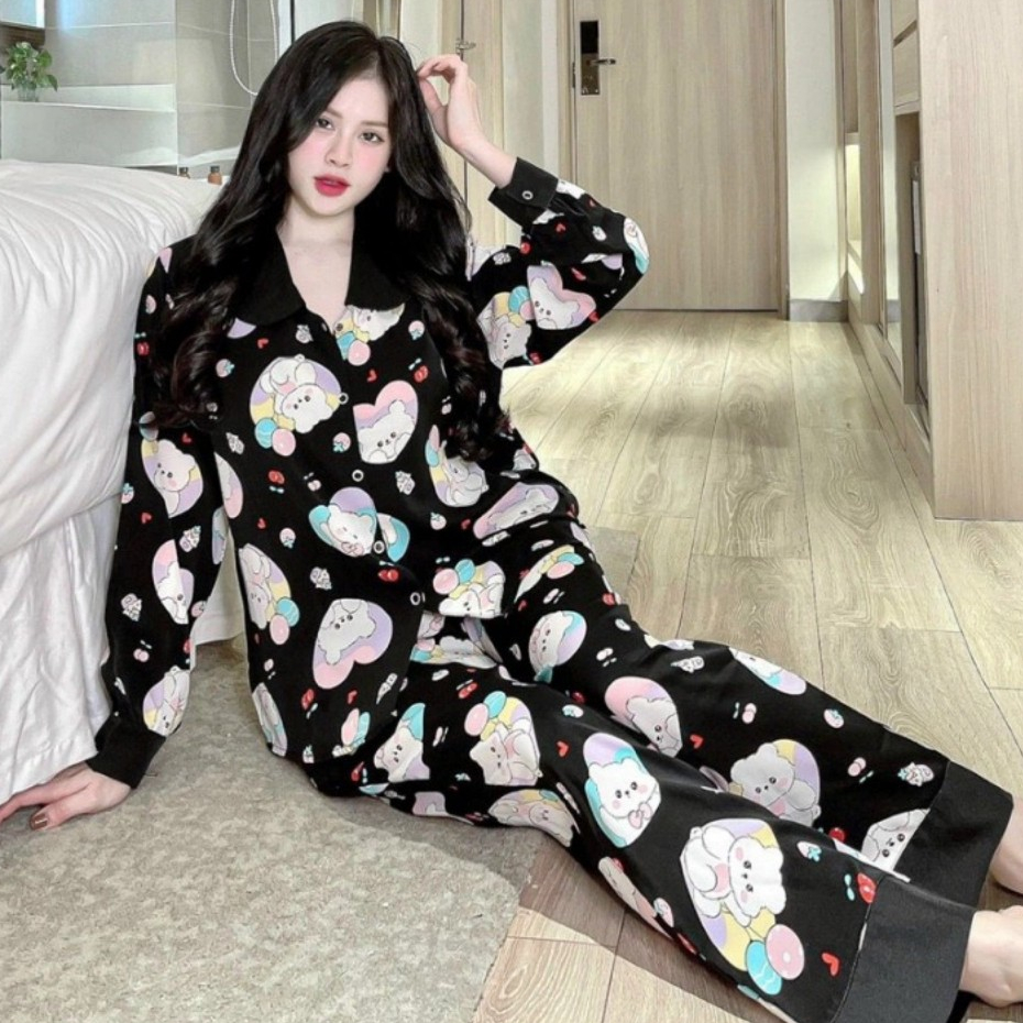 Women's pajamas to wear at home, kate Thai silk, cute long sleeves and long pants CARY