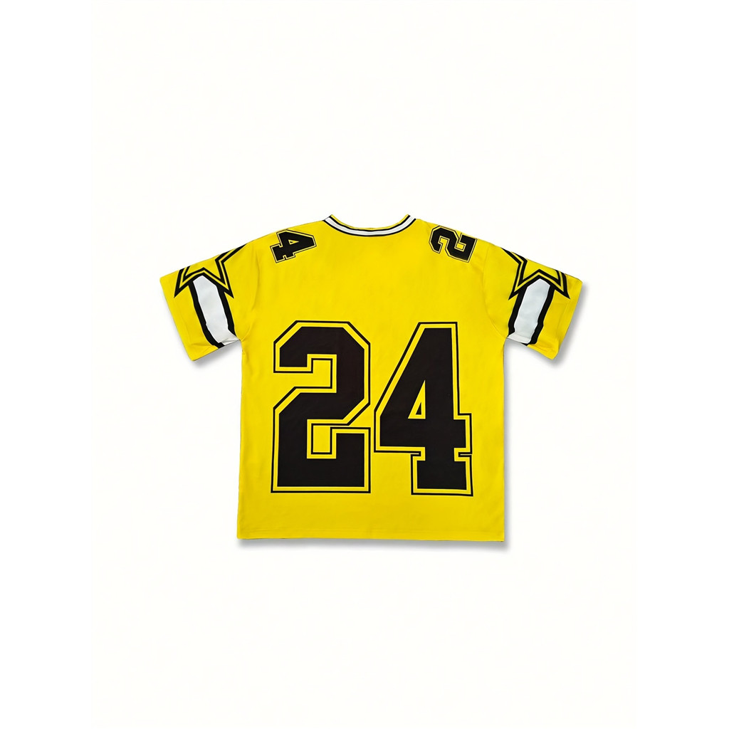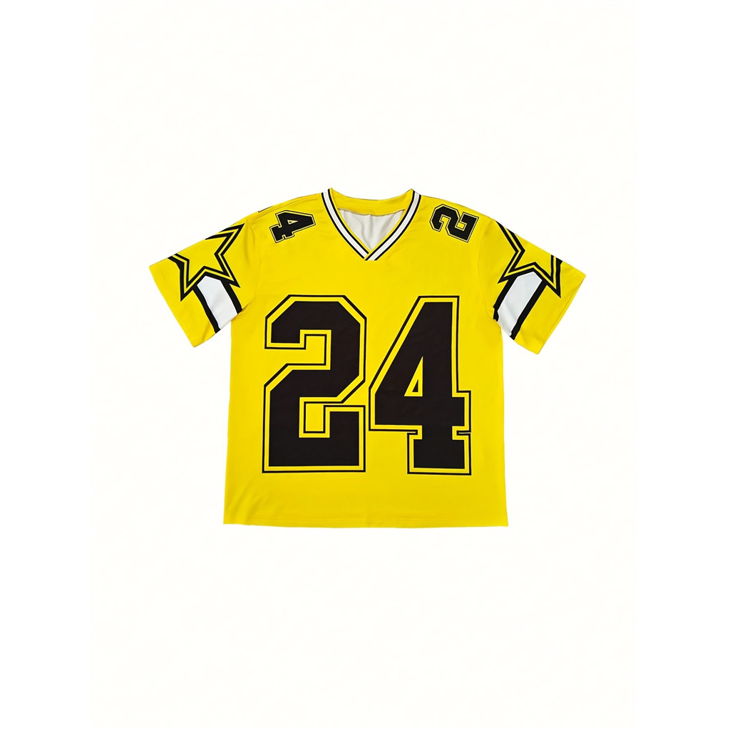 Women'S Retro Jersey Tee - Bright Yellow V-Neck Loose Fit with Number 24 Print, Casual Summer Top for College Style, All-Season Comfort, Casual Wear | Vneck | Comfortable Fit
