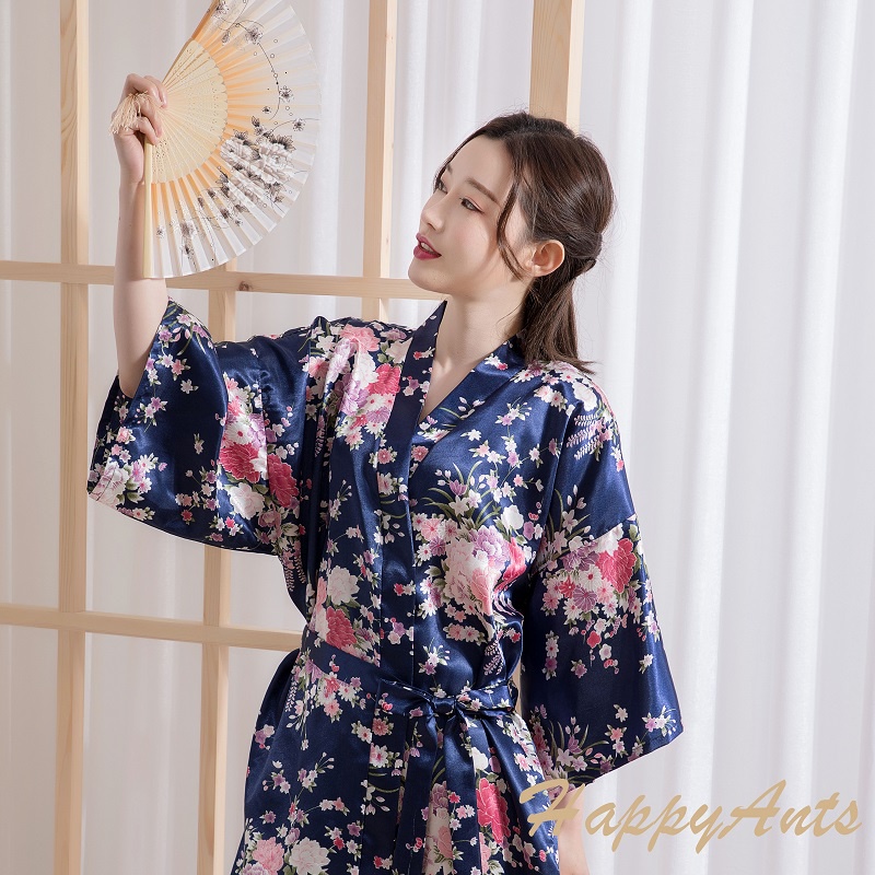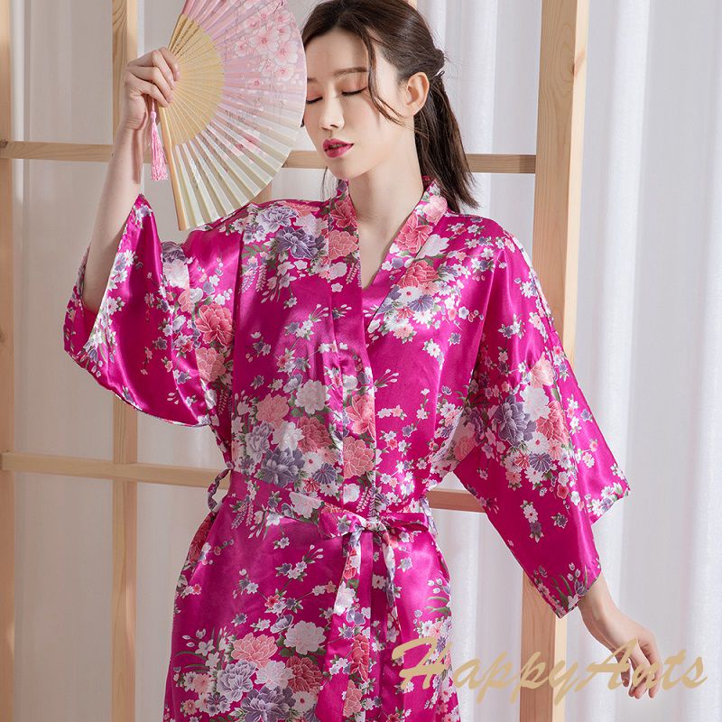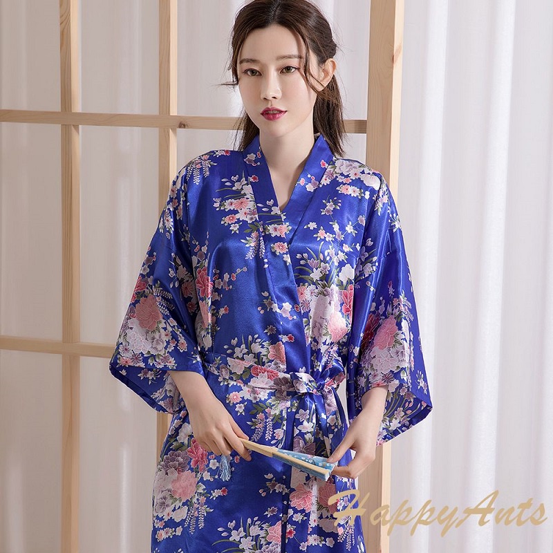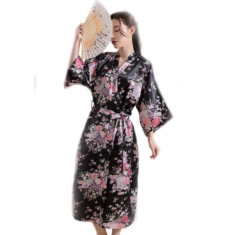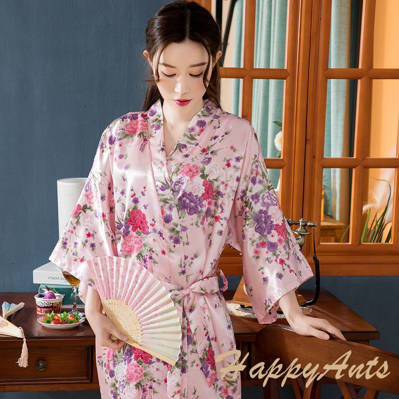 Women's simulation silk sexy nightwear cardigan, long robe sleepwear, floral thin pyjamas women, bath robe, satin kimono robe