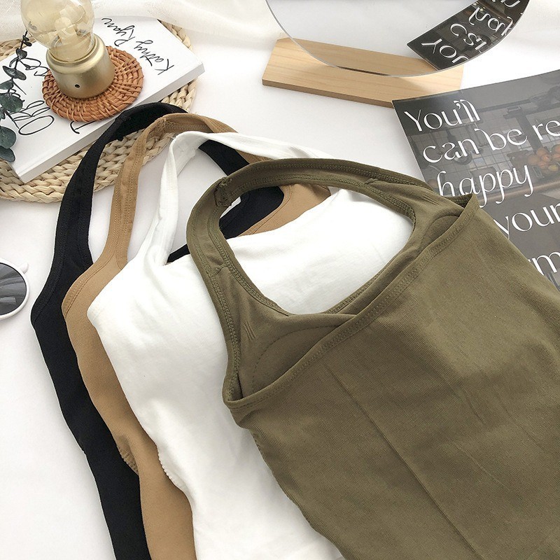 Women's Sleeveless Backless Halter Tank Top Hollow Bra Padded Sexy Casual Solid Color Tank Top