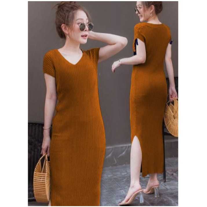 Women's Slit Dress Knit Hornet Women's Dress Collar Korean Style Latest Women's Dress 2025DS.CS Gallery