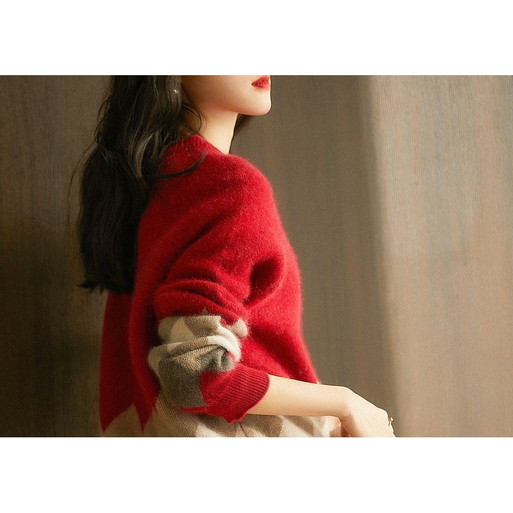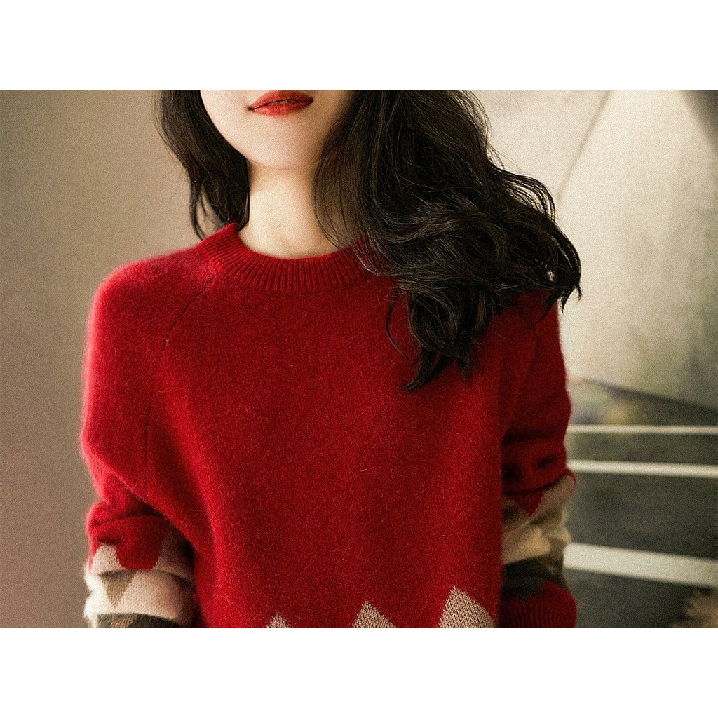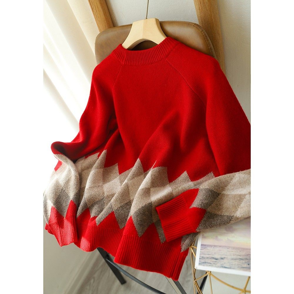 Women's Sweater 2024 Spring/Autumn Korean Edition Christmas Red Round Neck Loose Large Size Versatile Long Sleeve Top