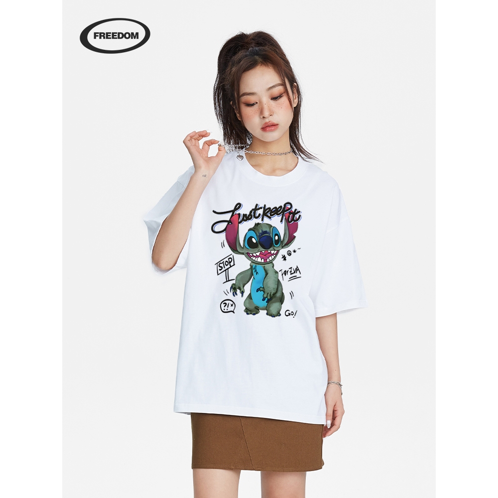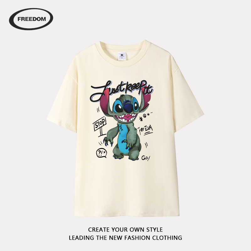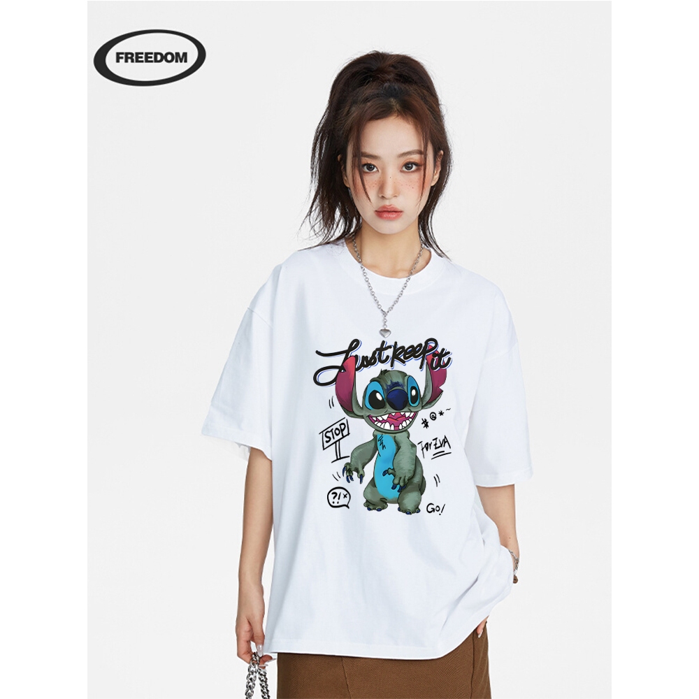 Women's T-shirt short sleeved retro trend Stitch print round neck top for summer
