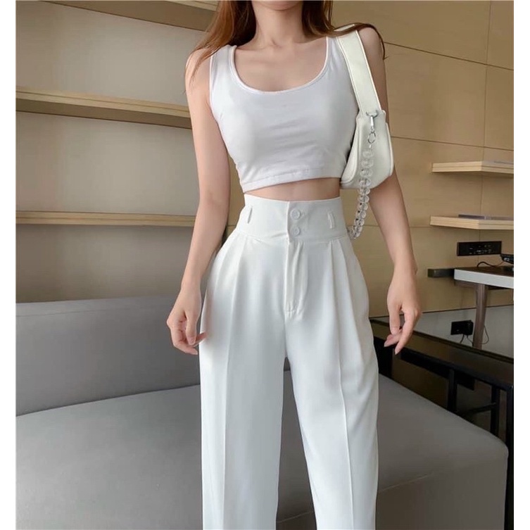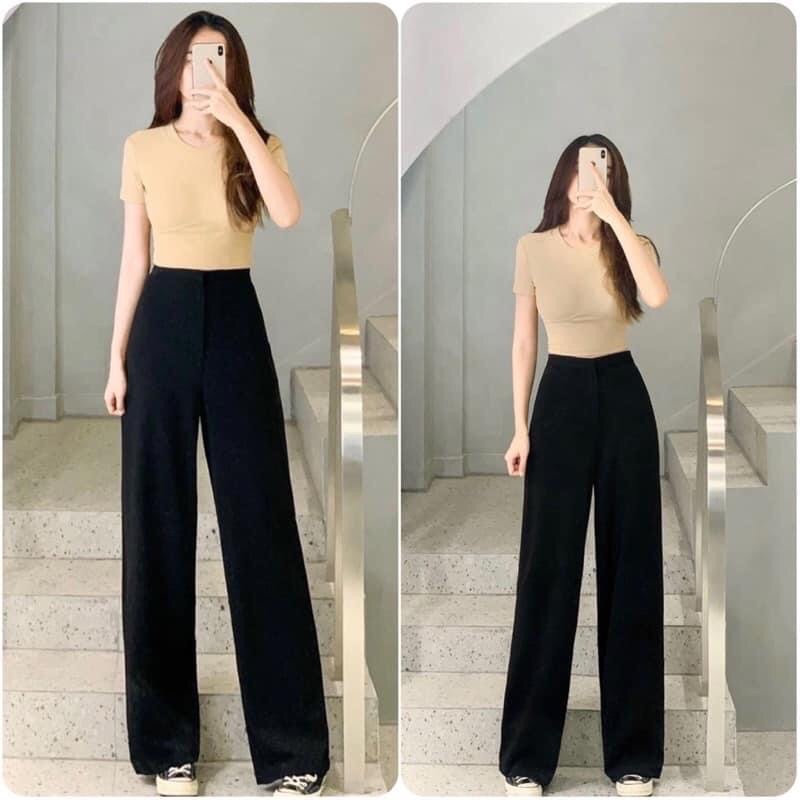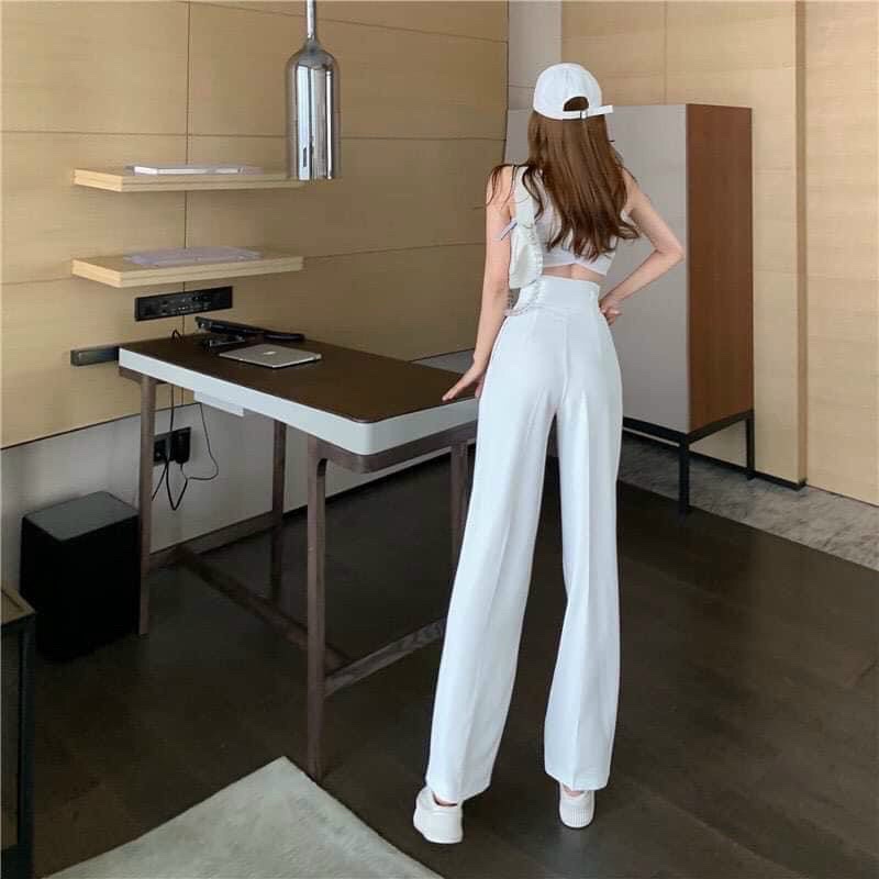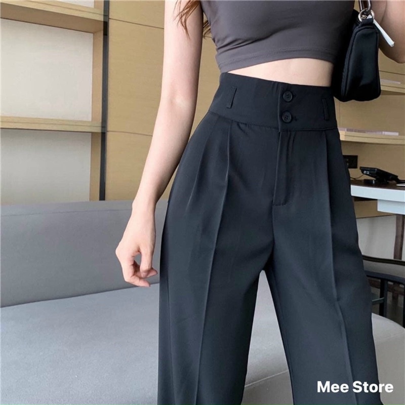 Women's Trousers Front High Waist Straight Buckle Wide Leg Pants Super Good Figure