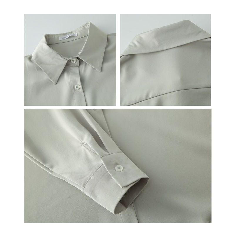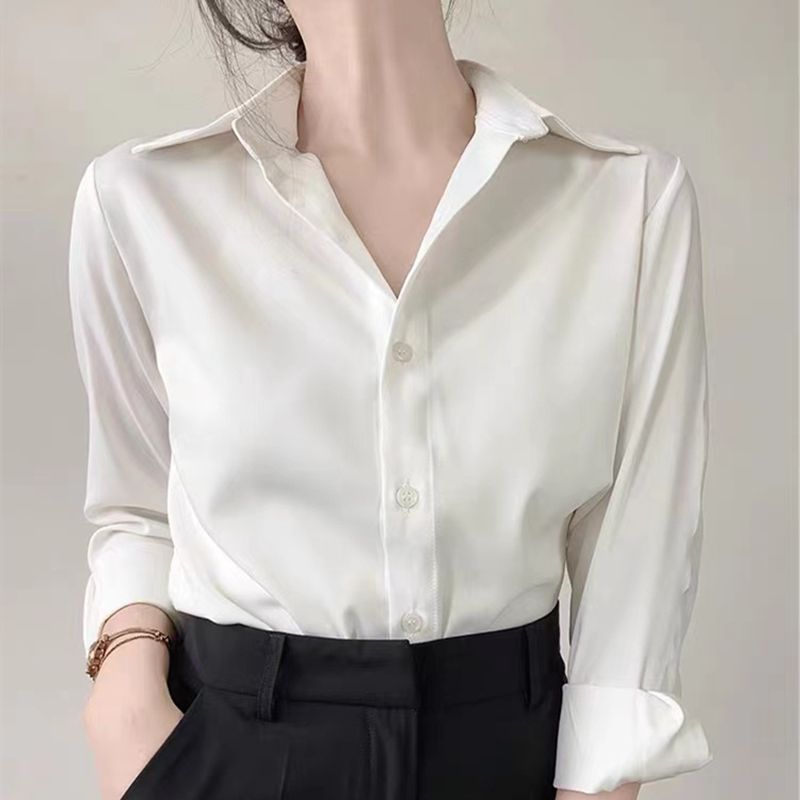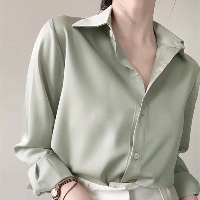 Women Satin Pian Blouse Long Sleeve Casual/Formal Kemeja Perempuan Office Lady Tops