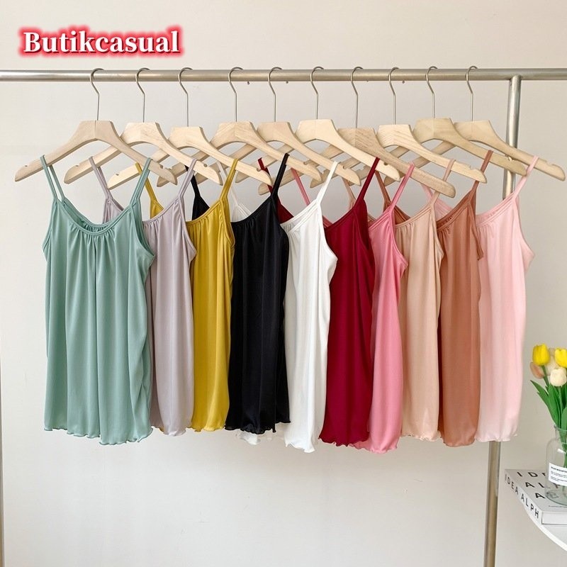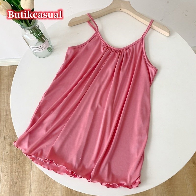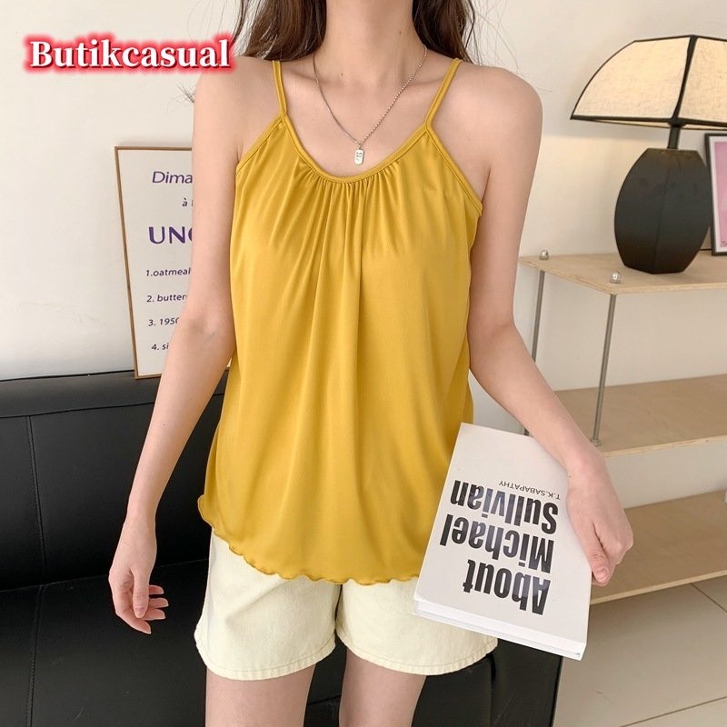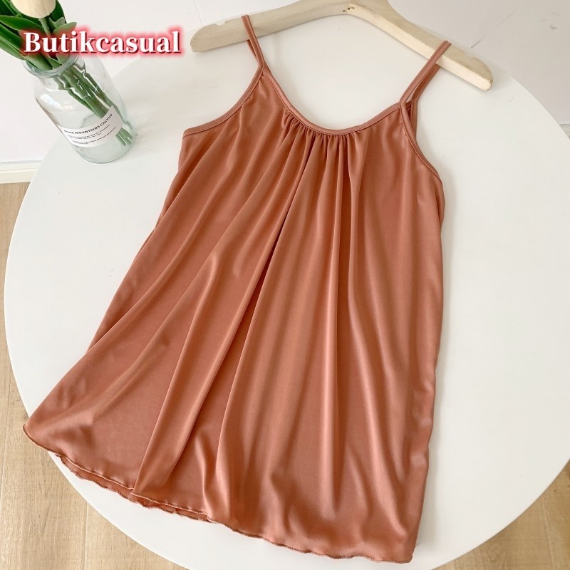Women silk camisole Summer Sleeveless t shirt Fashion Casual Camisole Plain pleated thin tank top