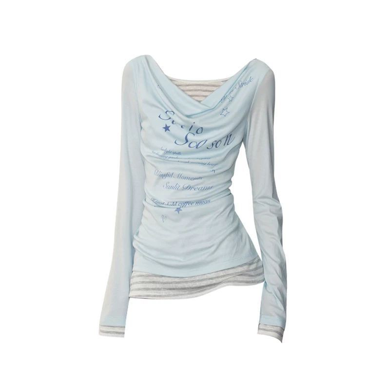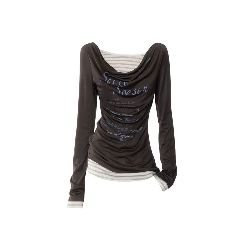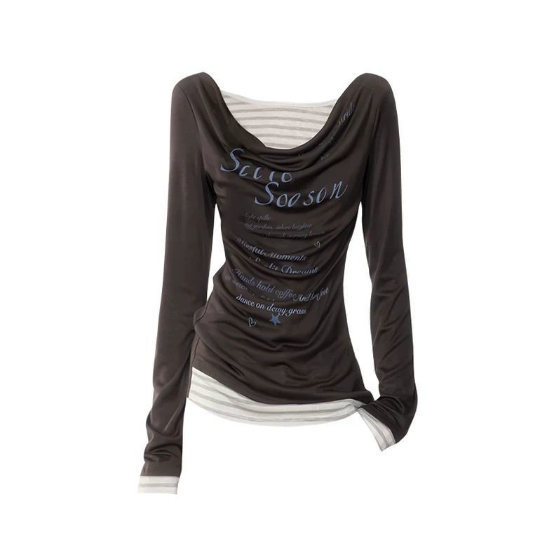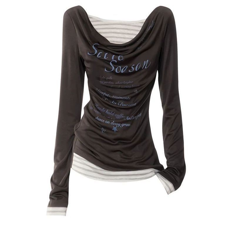 Women Vintage Y2K Strip T-shirt High Street Print Long Sleeves Top