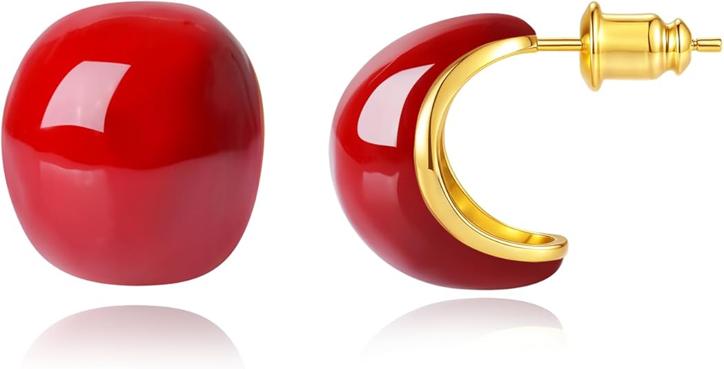 Women's geometric resin earrings, 18K gold-plated resin earrings, lightweight hollow and translucent hoops, transparent hypoallergenic vintage fashion jewelry gift