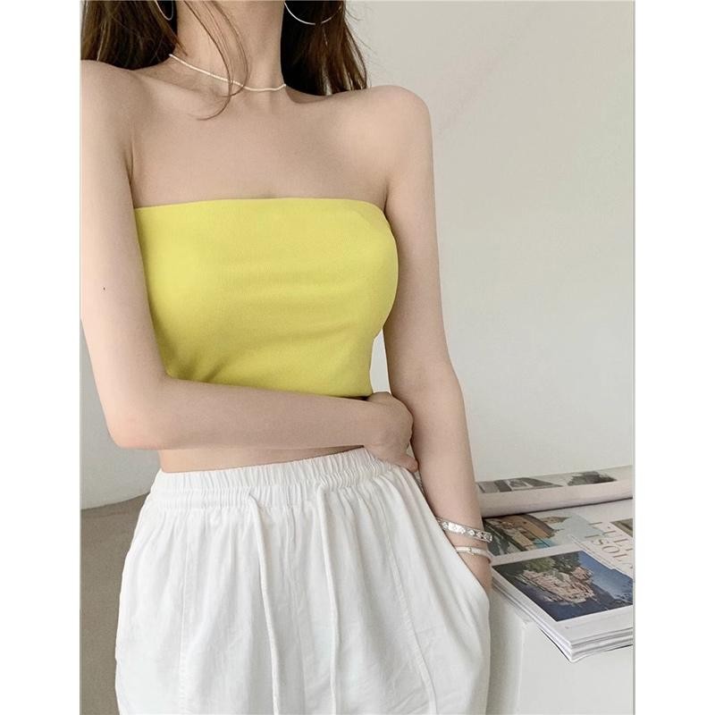 Wonderful Night Korean Style Tube top Women's Vest Sleeveless Casual Thin sexy crop Backless