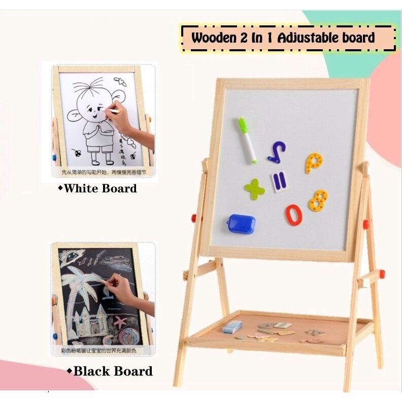 Wooden 2In1 Adjustable Black And White Board Double Sided Writing Board Toy Early Leaning Best Gift For Children (2609)