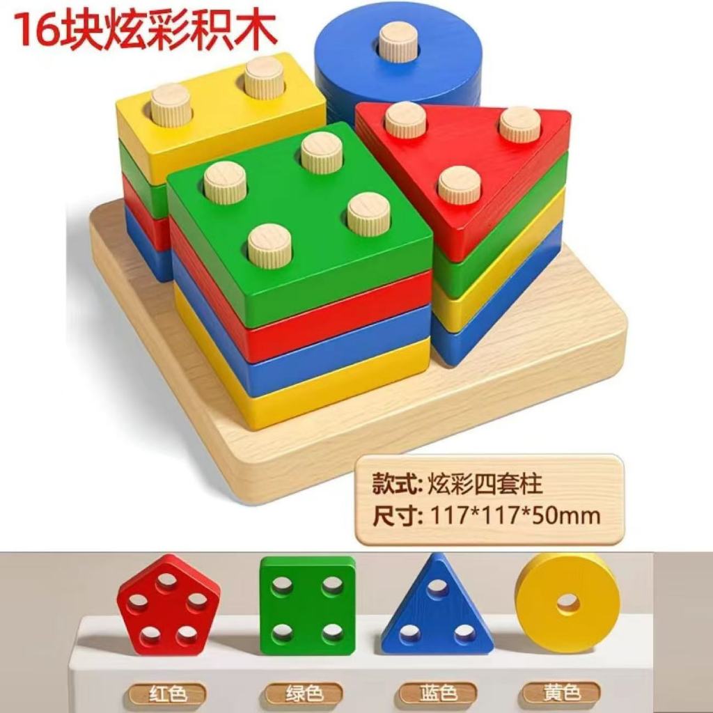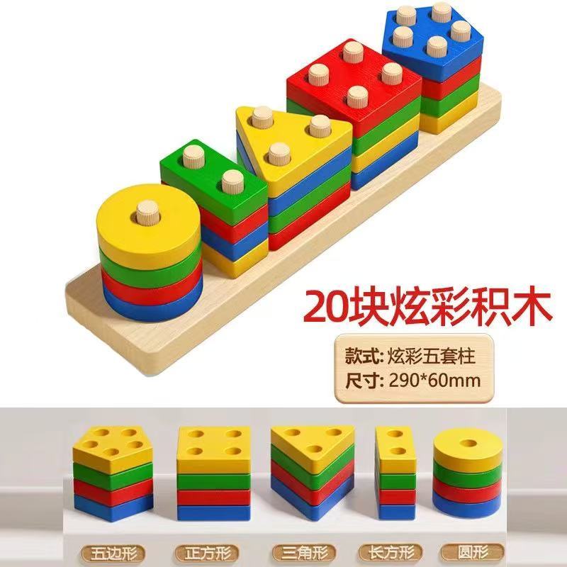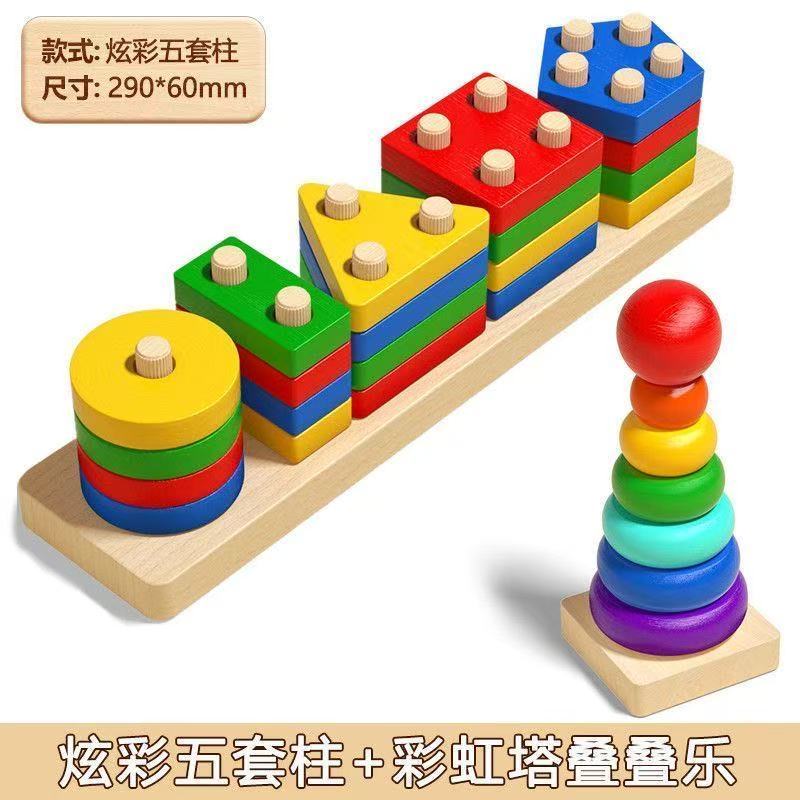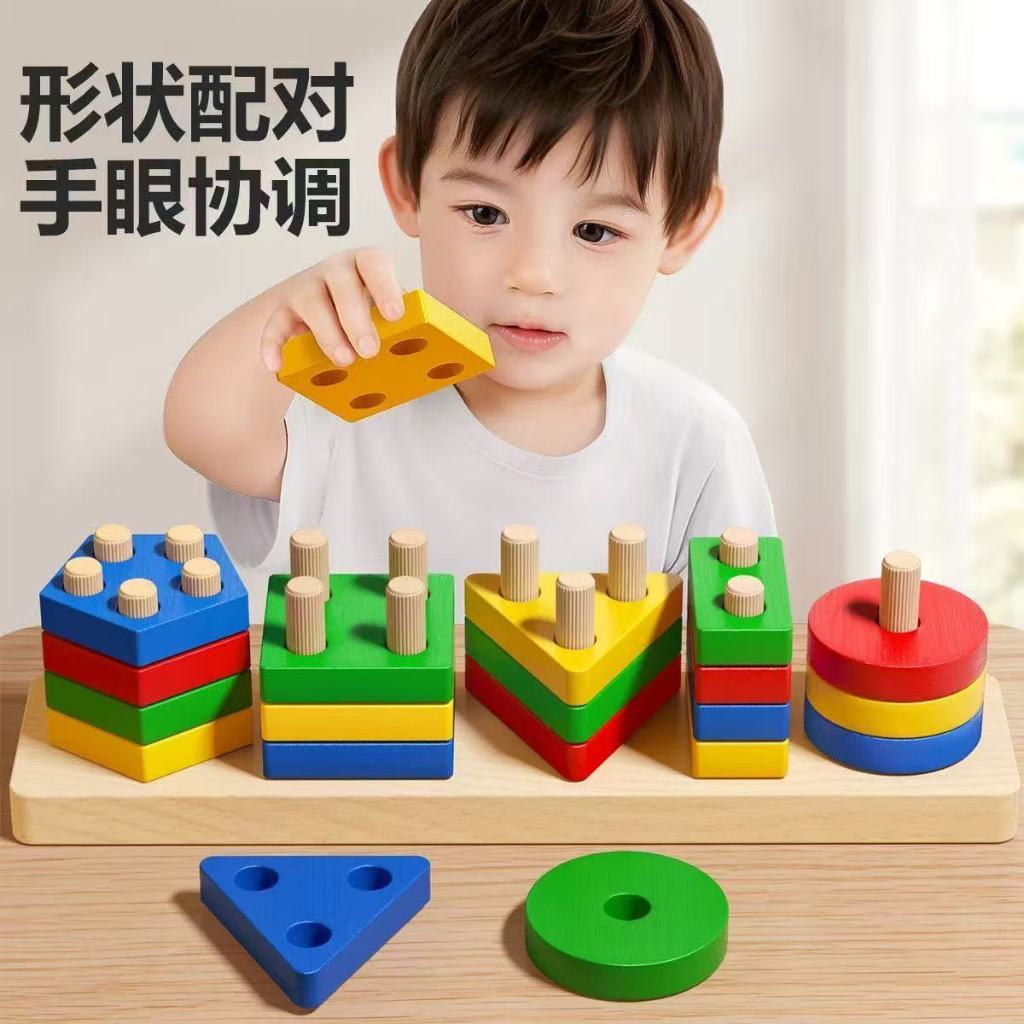 Wooden Shape Sorter Toys for Kids 1 2 3 Years Old, Montessori Shape Matching & Stacking Blocks with Geometric Columns, Baby Early Learning Educational Toys