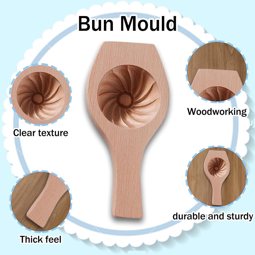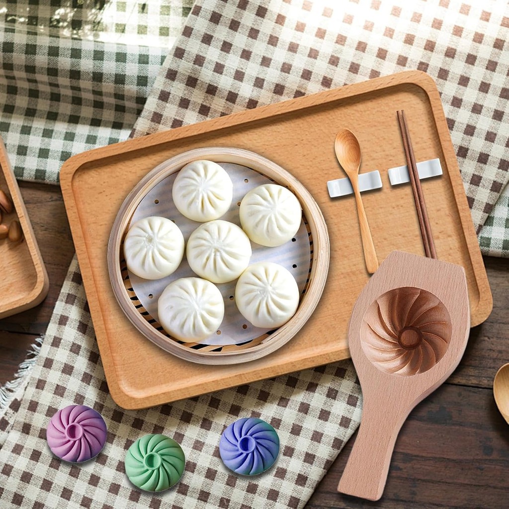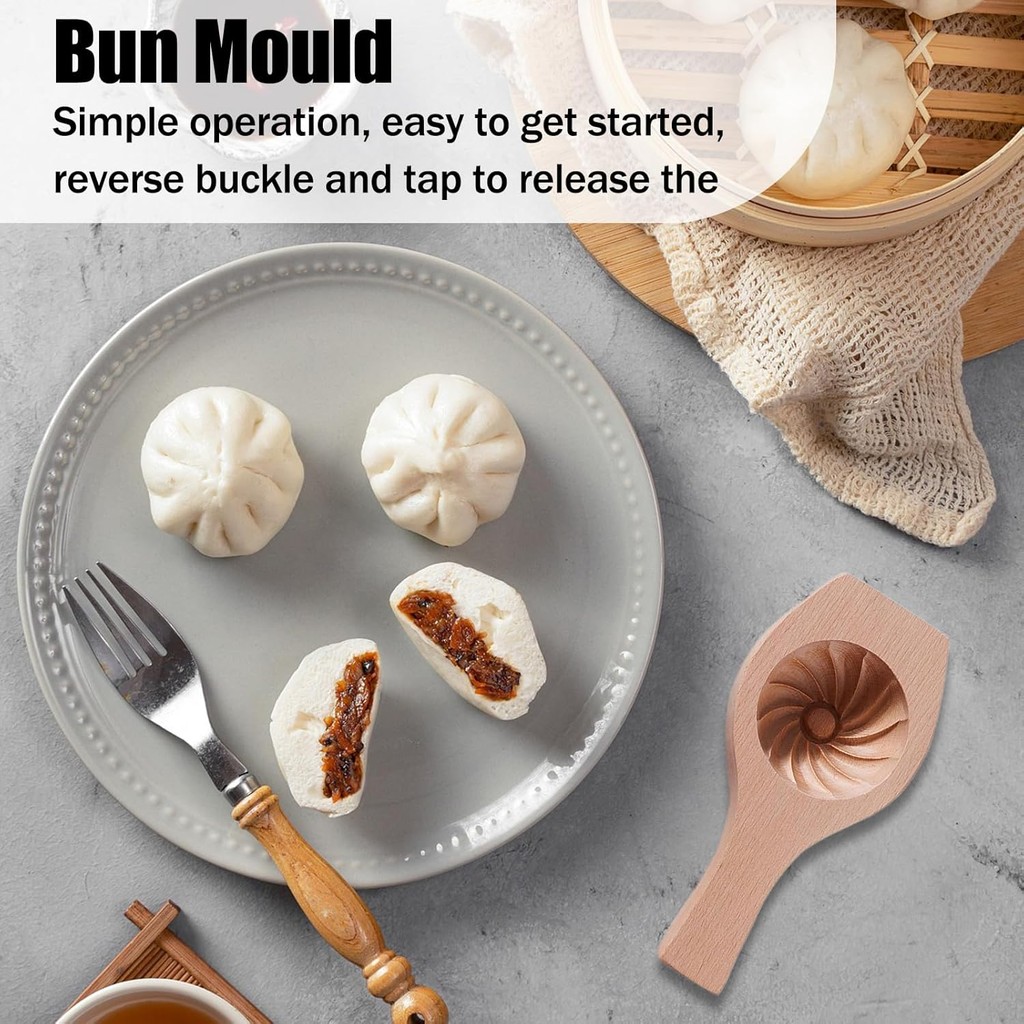 Wooden Steamed Bun Mold Hand Carved Baozi Dumpling Pastry Mold DIY Flower Shape Baking Tool