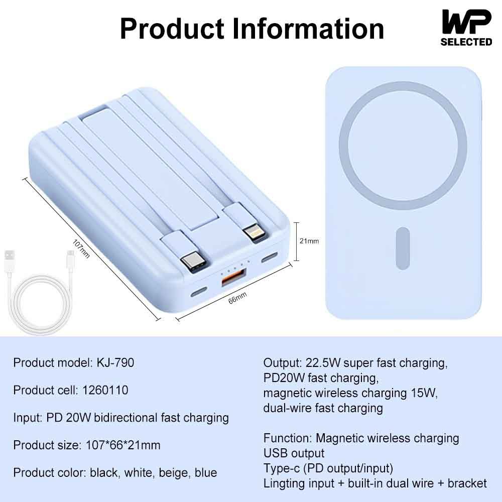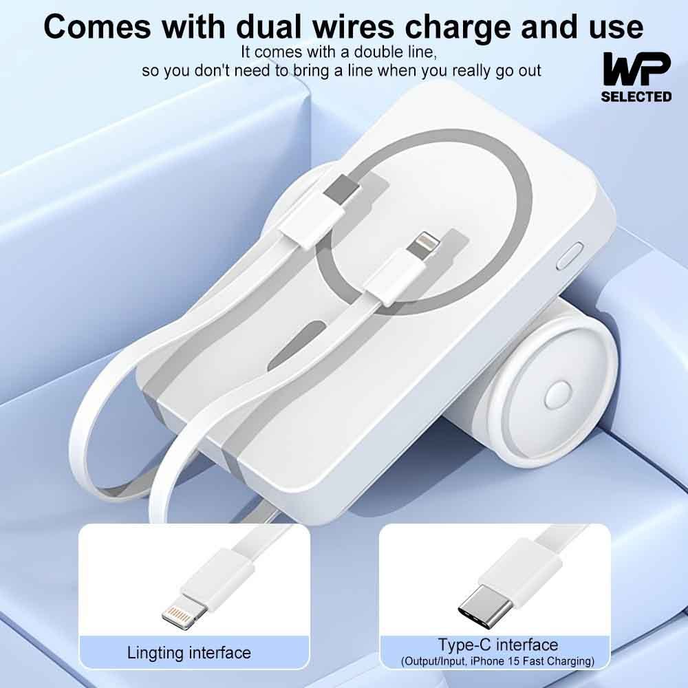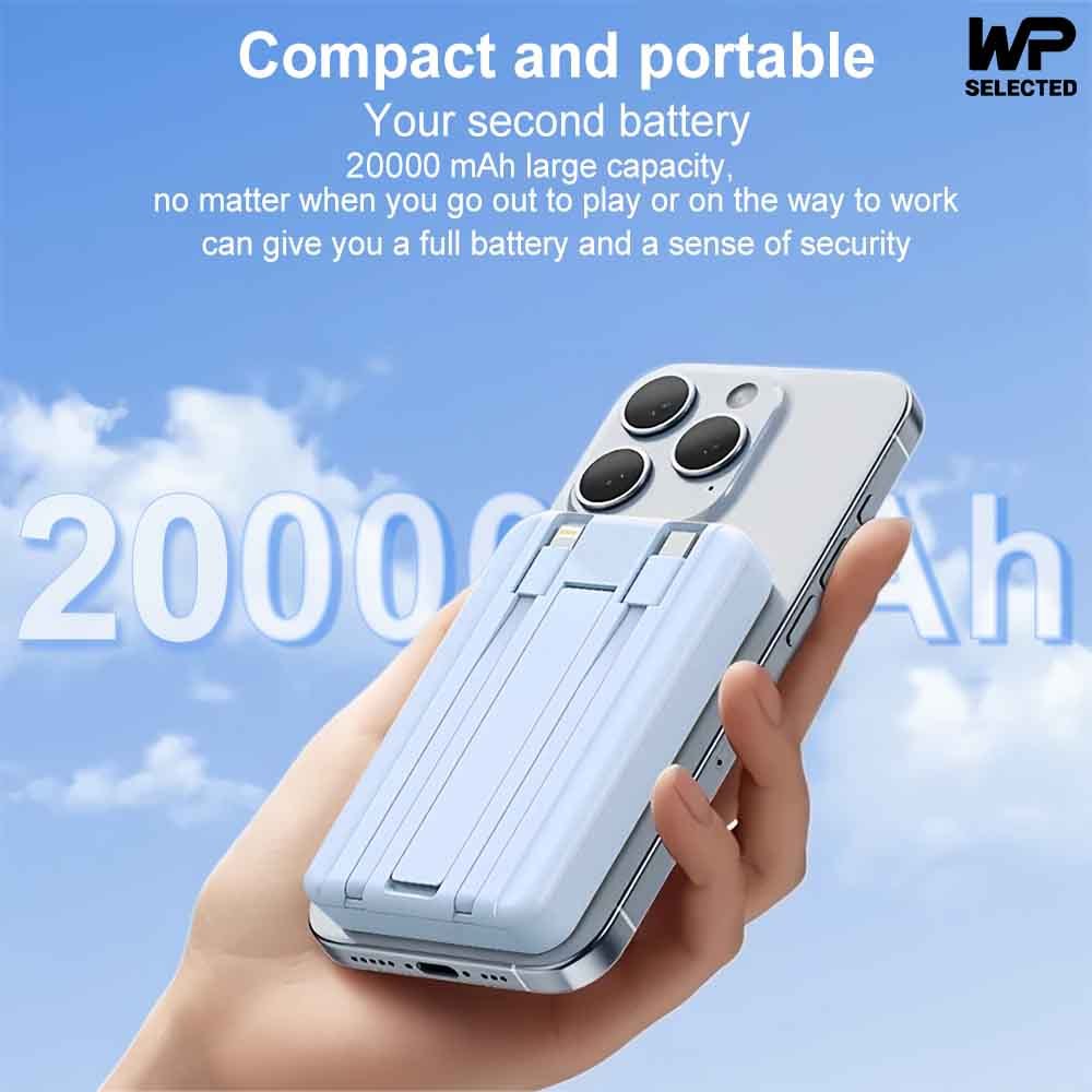 [WP]【3c certification】Wireless Magnetic 3C Powerbank Fast Charging 22.5W Portable Powerbank 20000mAh Built-in doule Cable Capacity Mini Power Bank Type-C USB Charging 充电宝