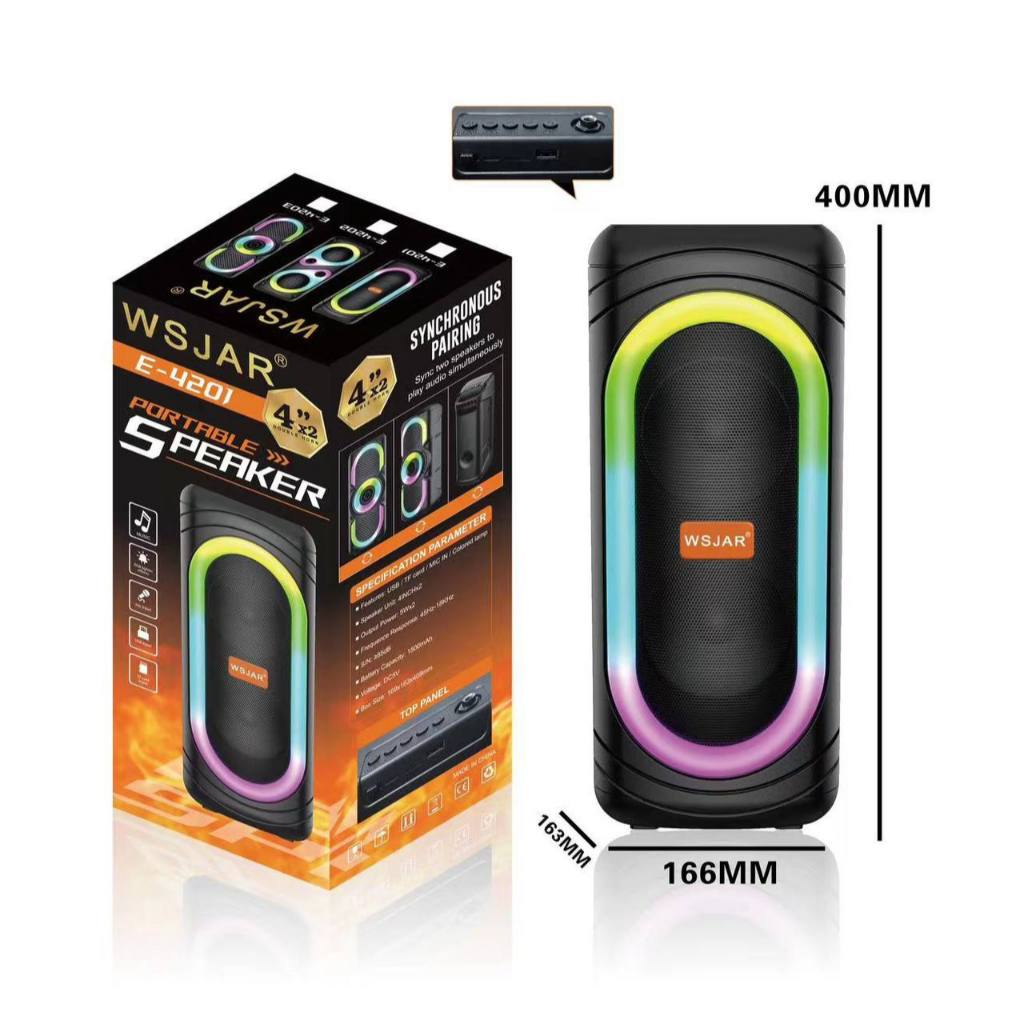 WSJAR E-4201/E-4202/E-4203 4x2 Inches High Quality Super Strong Bass 1800mAh RGB Portable Multifunction Portable Speaker