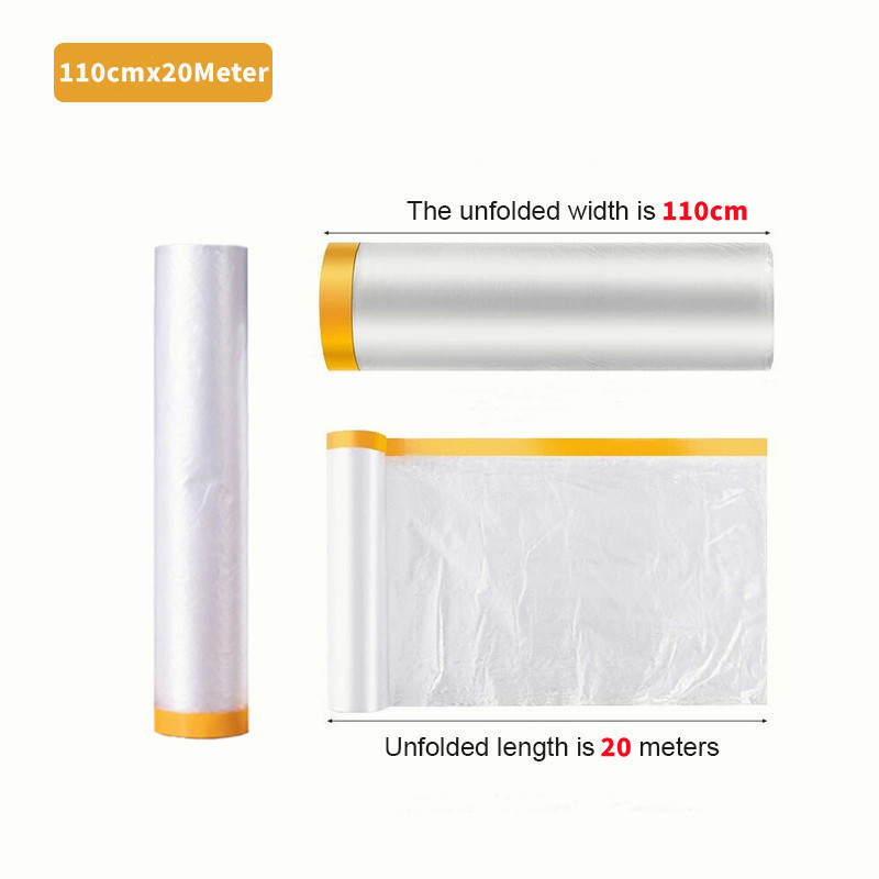 WT Masking Film with Tape – Painting Protection Cover, Plastic Drop Cloth, Dust Shield (55/110/180/280cm)