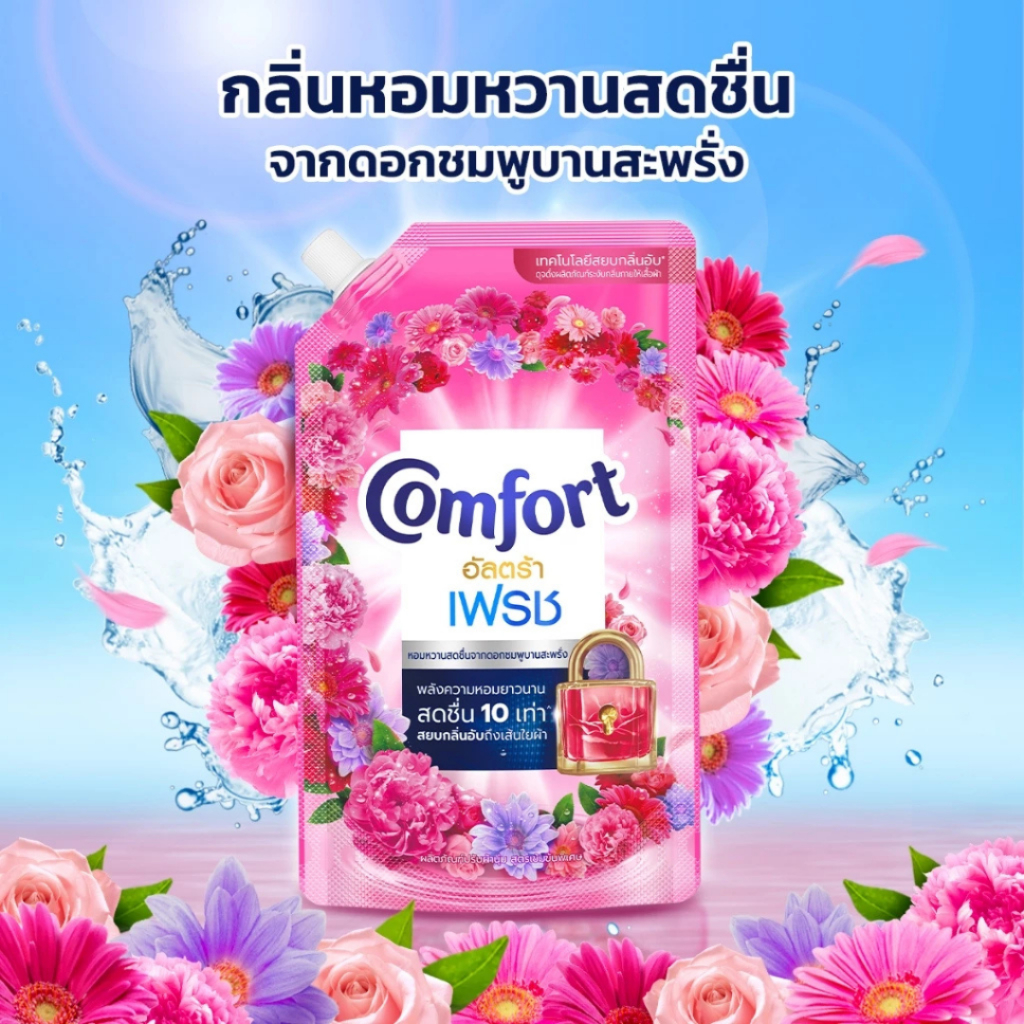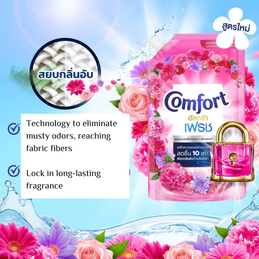 x3 Comfort Floral Fresh Fabric Softener, Extra Concentrated Formula, Ultra Pink, 480ml.(Pelembut kain pekat)