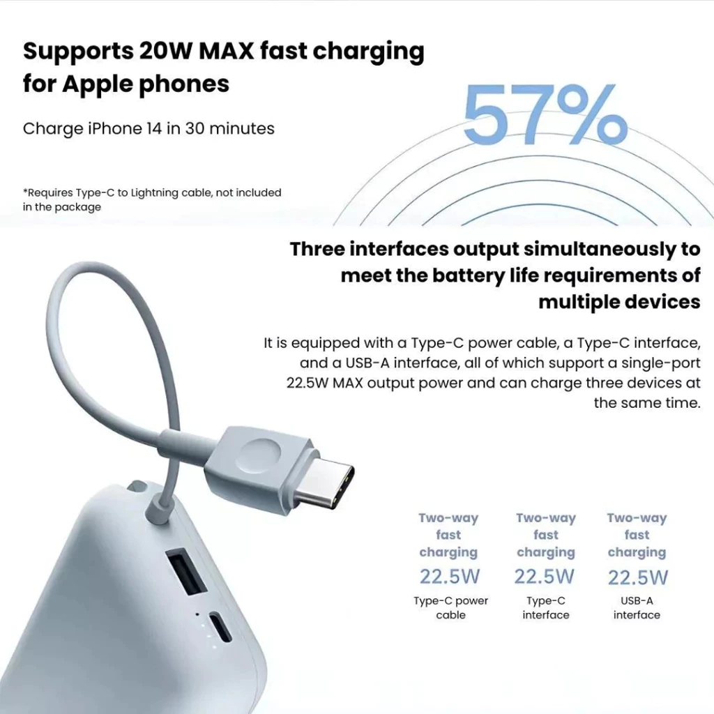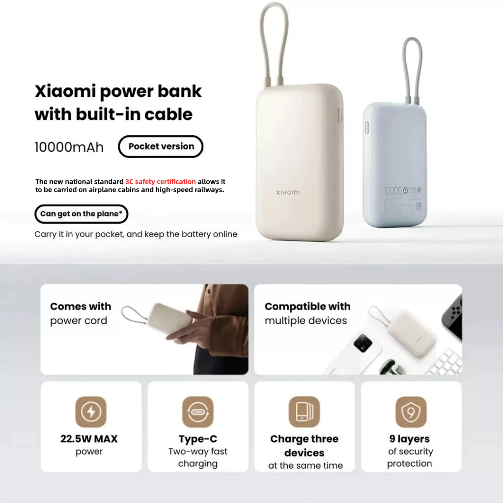 Xiaomi Built-in Cable Power Bank 20000mAh Pocket Version 33W Two—Way Fast Charge USB-C CCC Powerbank