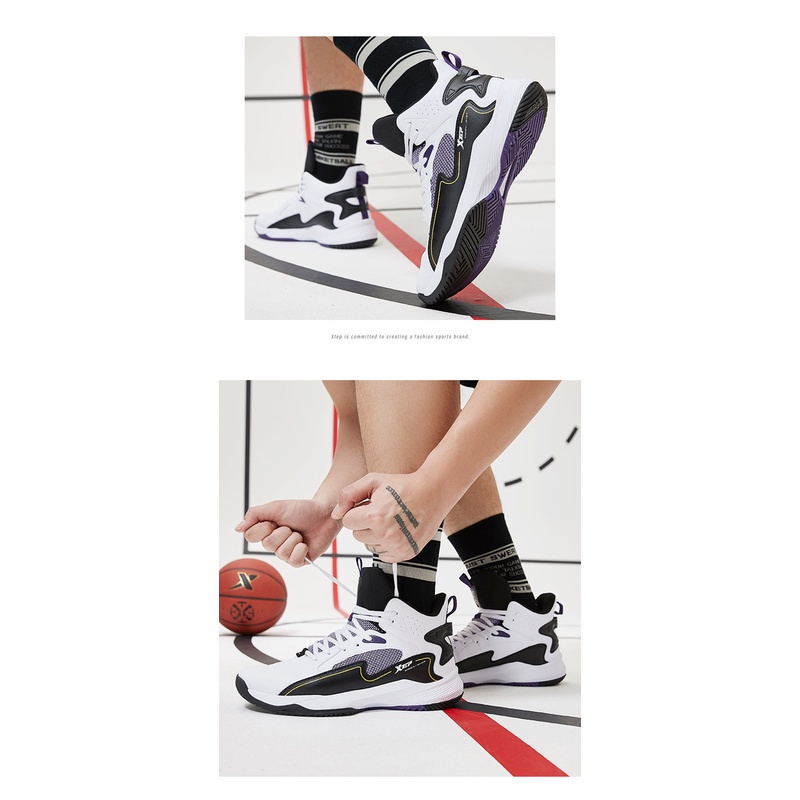 XTEP Men Basketball Shoes Wear-Resistant Indoor Training High-Top Outdoor Cushioning Combat Sneaker Cushioning