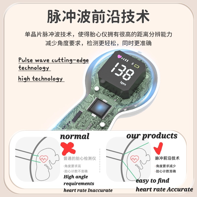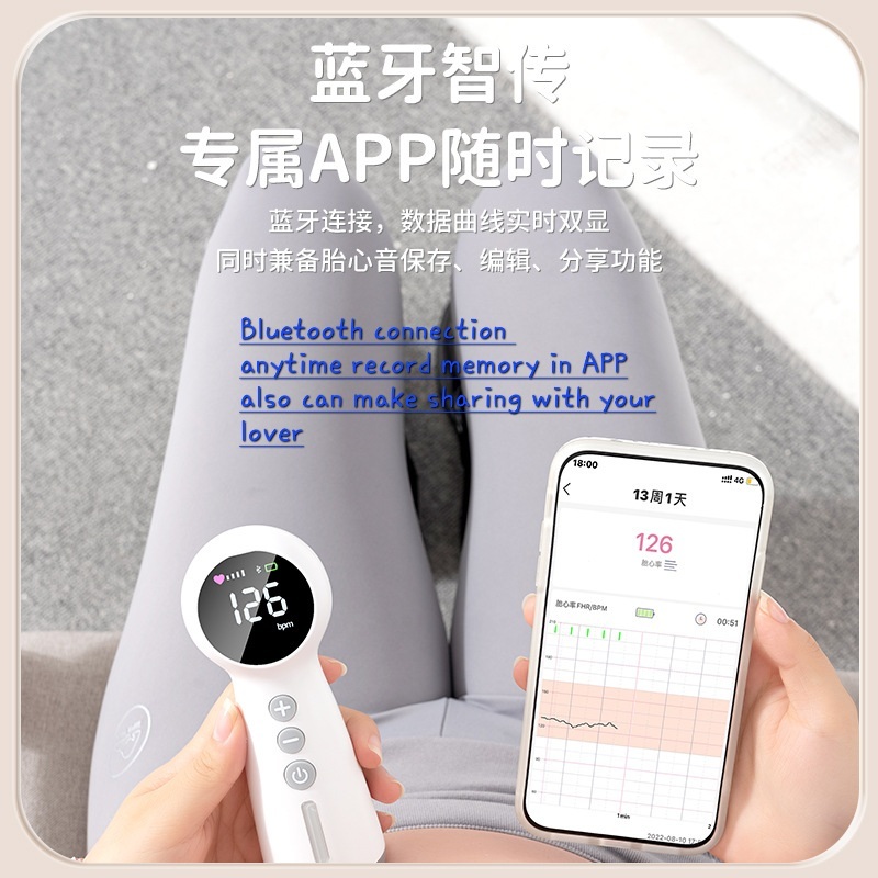 XU CARENo Radiation Bluetooth Transmission Rechargeable Fetal Doppler Baby Prenatal Heart Rate Monitor Heartbeat Detect