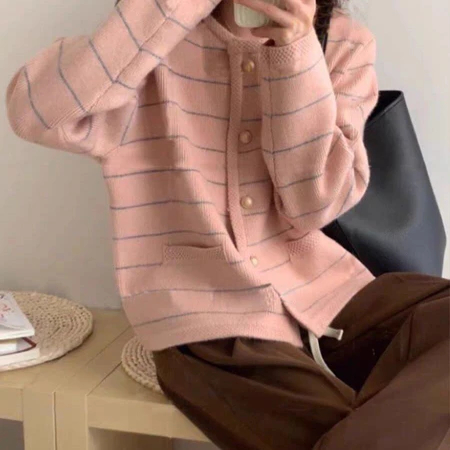 ?XZSS?Sweater Cardigans Korean Fashion New Korean Loose Long sleeved Knit Sweater Cardigan