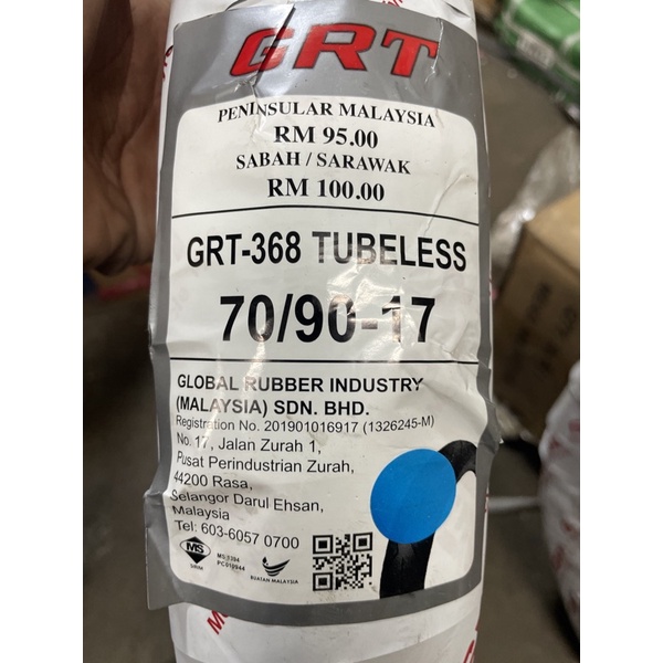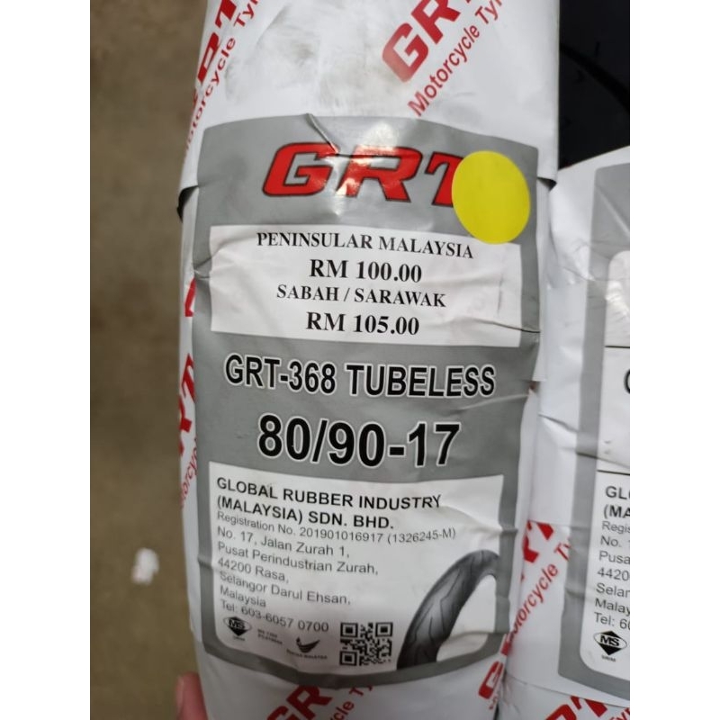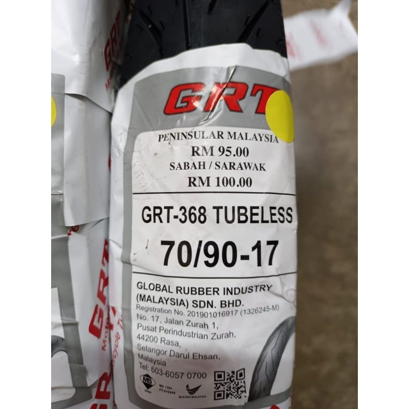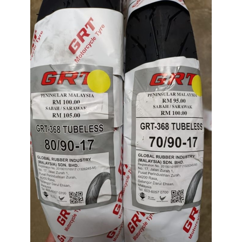 Y15ZR RSX RS150 Y16Z TAYAR TYRE TUBELESS BUNGA PIRELLI DIABLO ROSSO SPORT GRT368 70/90-17 & 80/90-17 GLOBAL TYRE