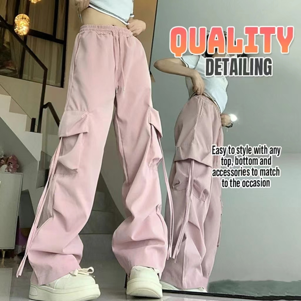 Y2K Wide Leg Cargo Pants Women Fashion Cargo Pants Loose Hip-Hop Wide Leg Pants Slim Long Pants